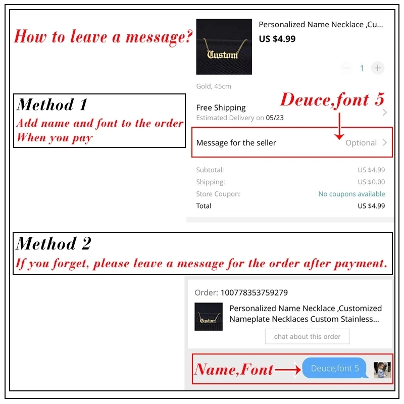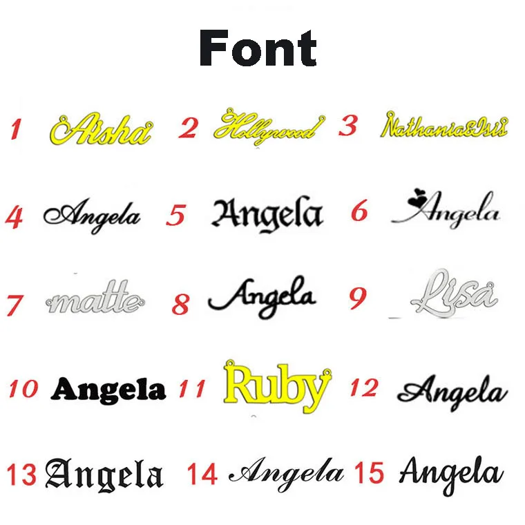 1. Дорогой, после того, как вы разместили заказ. Пожалуйста, пришлите нам имя, которое вы хотите настроить, а затем отправьте мне изображение, которое вы хотите сделать на заказ. (Такие как: Freya, шрифт 3)