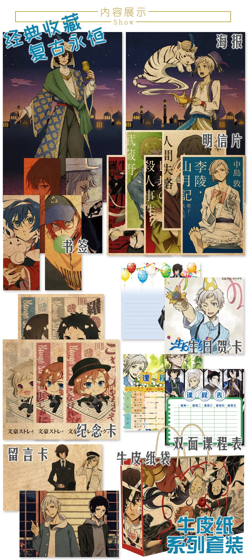Подарочный пакет аниме бродячие псы Bungo, винтажная коллекционная игрушка из крафт-бумаги с ретро-постером, значок, наклейки