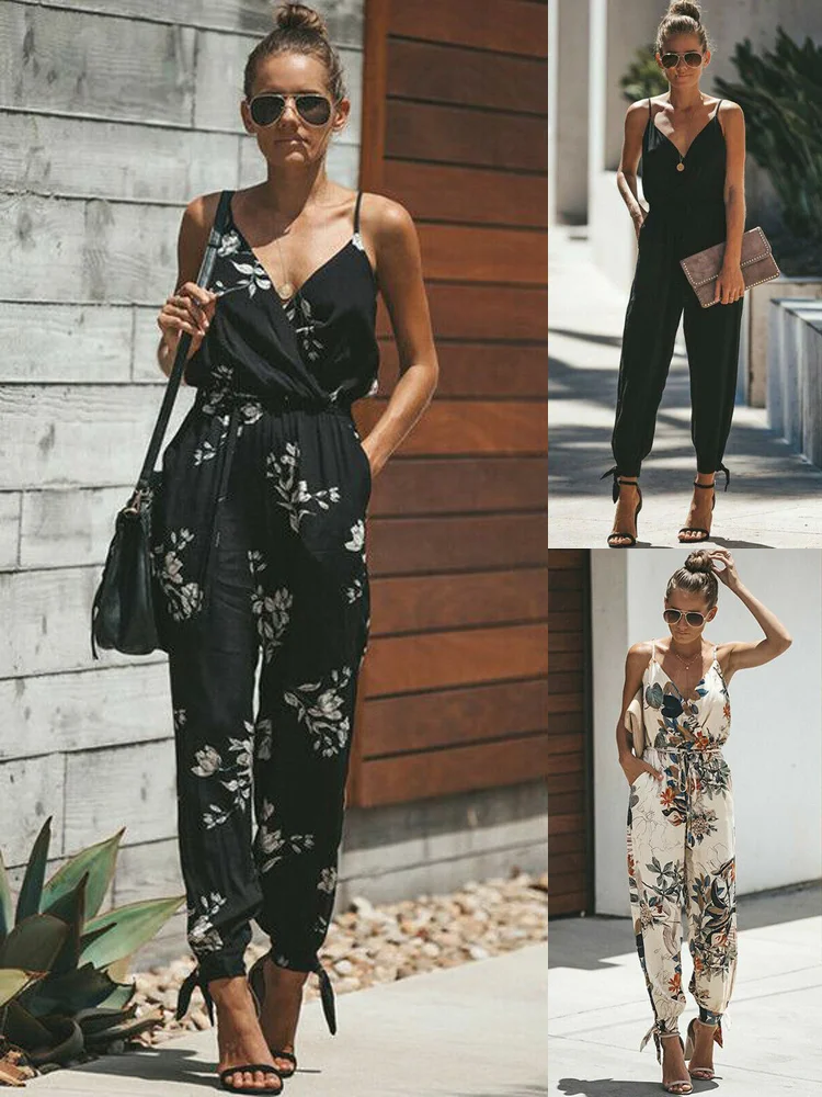 Женский Летний комбинезон с V-образным вырезом и цветочным принтом