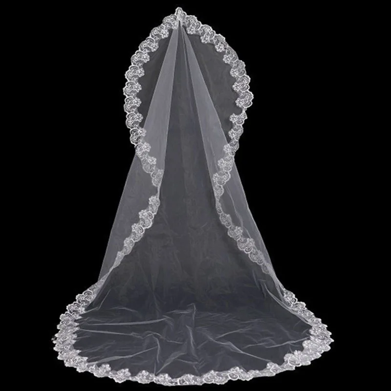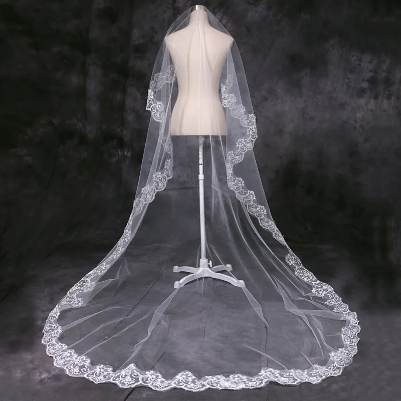 2021 новый стиль Длинная кружевная свадебная вуаль белая слоновая кость Соборная 1 слой свадебная вуаль 3 метра свадебная фата Свадебные аксессуары
