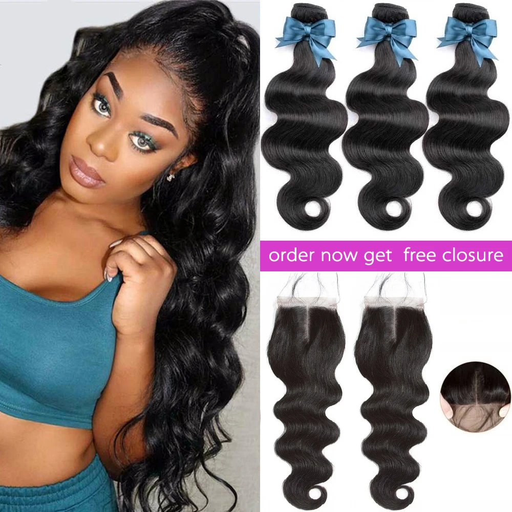 Волнистые человеческие волосы в пучках с застежкой, малазийские волнистые искусственные пряди, HD Прозрачная T-кружевная застежка