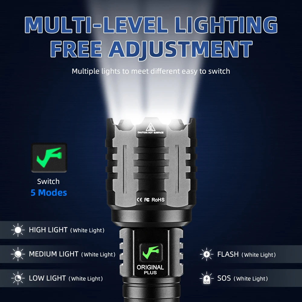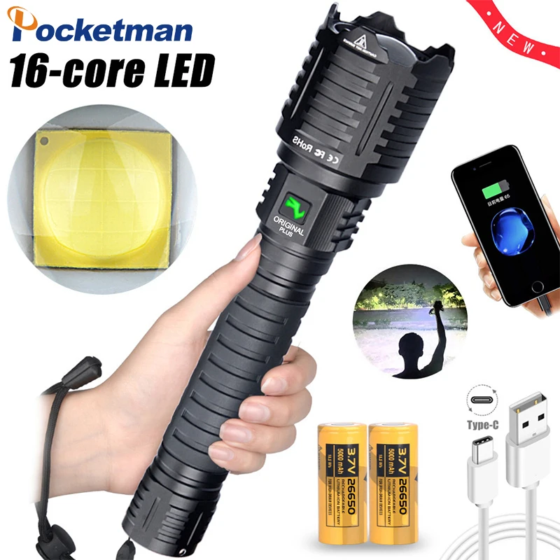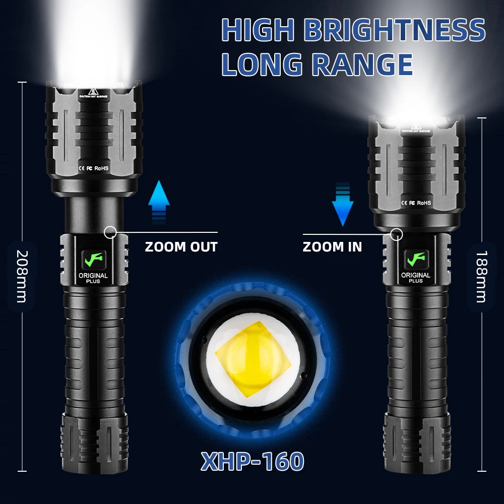 Мощный светодиодный водонепроницаемый фонарик XHP160, масштабифонарь фонарик, 16 ядер, суперъяркие тактические фонарики, перезаряжаемый от USB фонарик