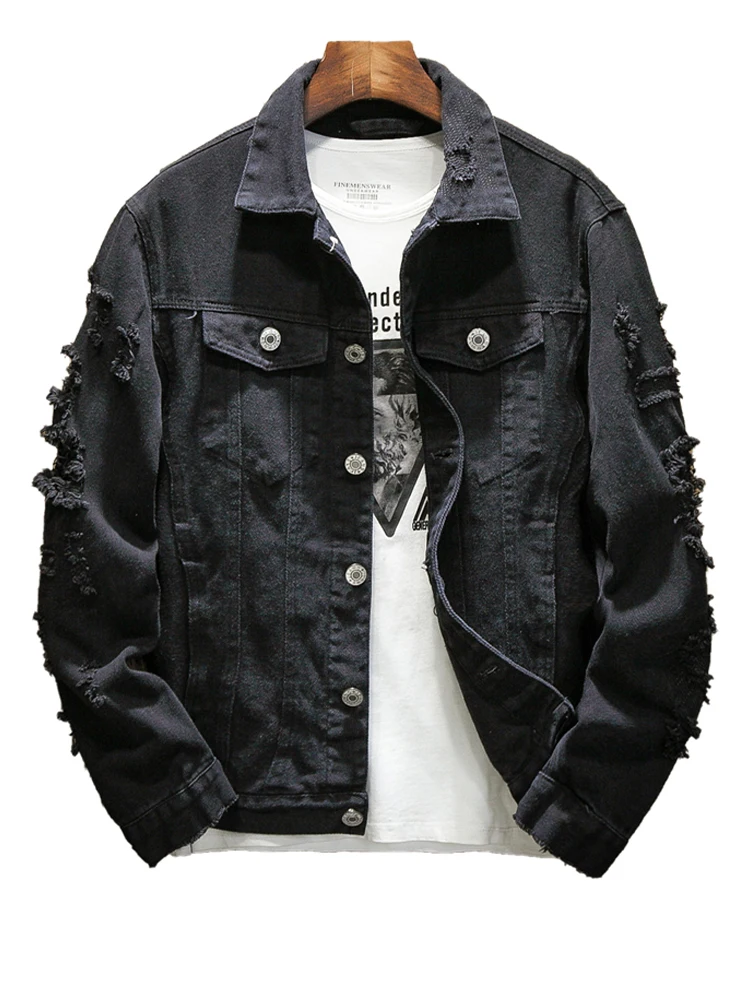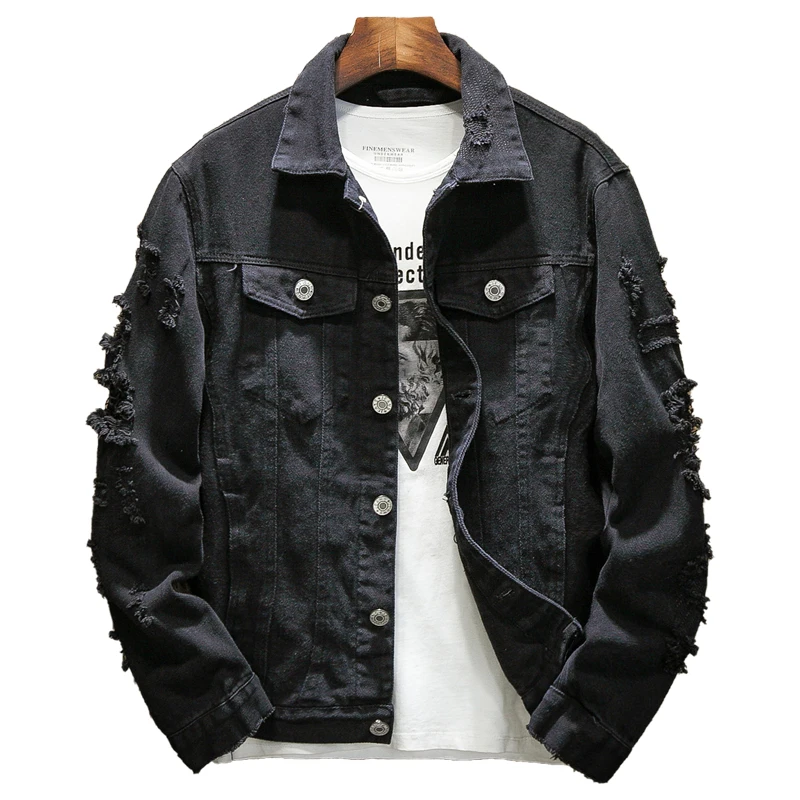 Куртка мужская джинсовая с рваными дырками, модная уличная одежда и...