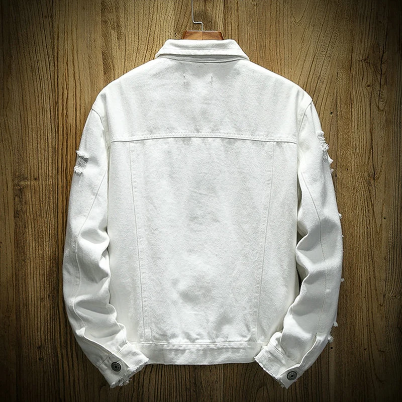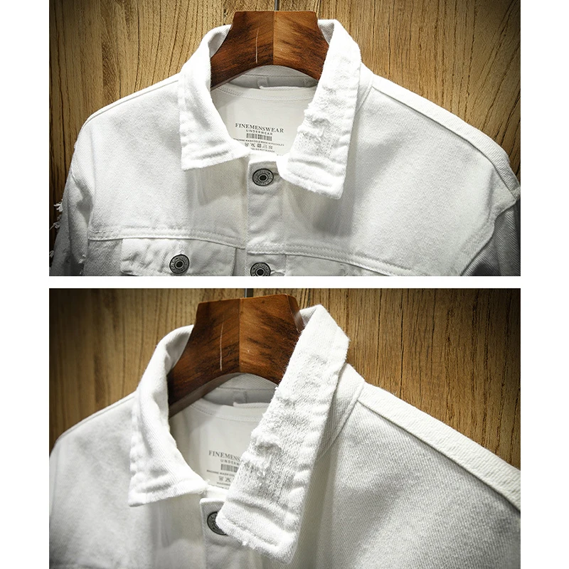 Мужская приталенная джинсовая куртка, красная, белая, черная рваная джинсовая куртка с дырками, верхняя одежда для осени, 2021
