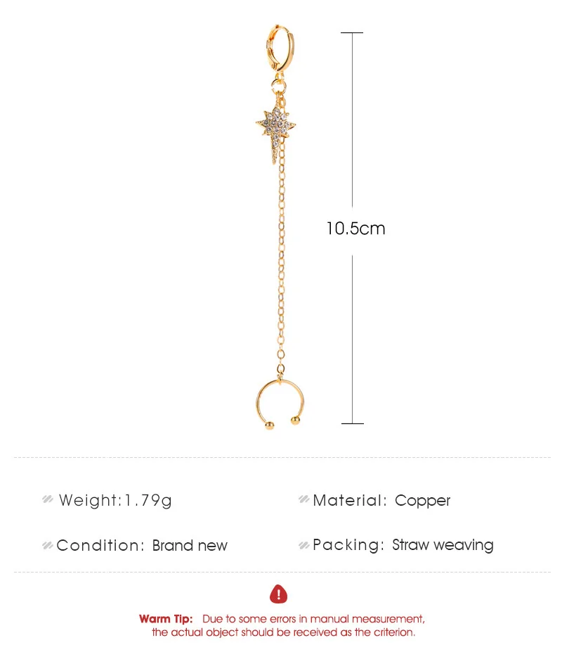 Модные серьги Стразы со звездами для женщин, серьги-клипсы с перекрестными кисточками, цепочка, серьги-гвоздики, ювелирные изделия Kpop пирсинг в стиле панк