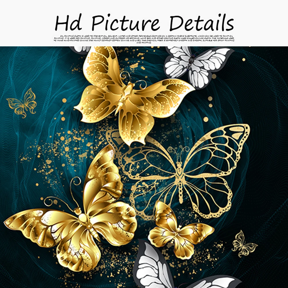 3 панели абстрактные синие золотые бабочки, холст, живопись в скандинавском стиле, Современная фотография, настенное искусство для украшения дома