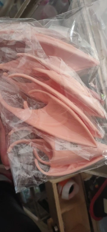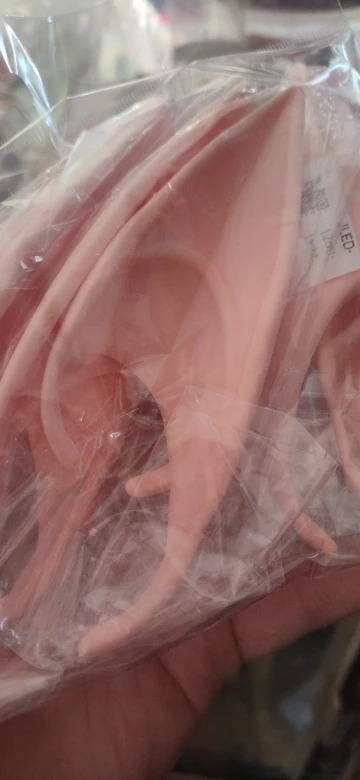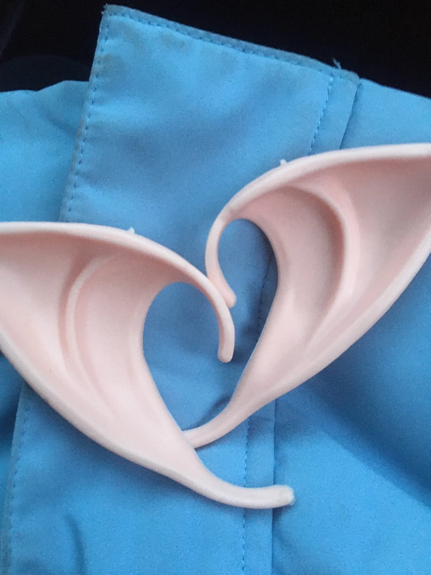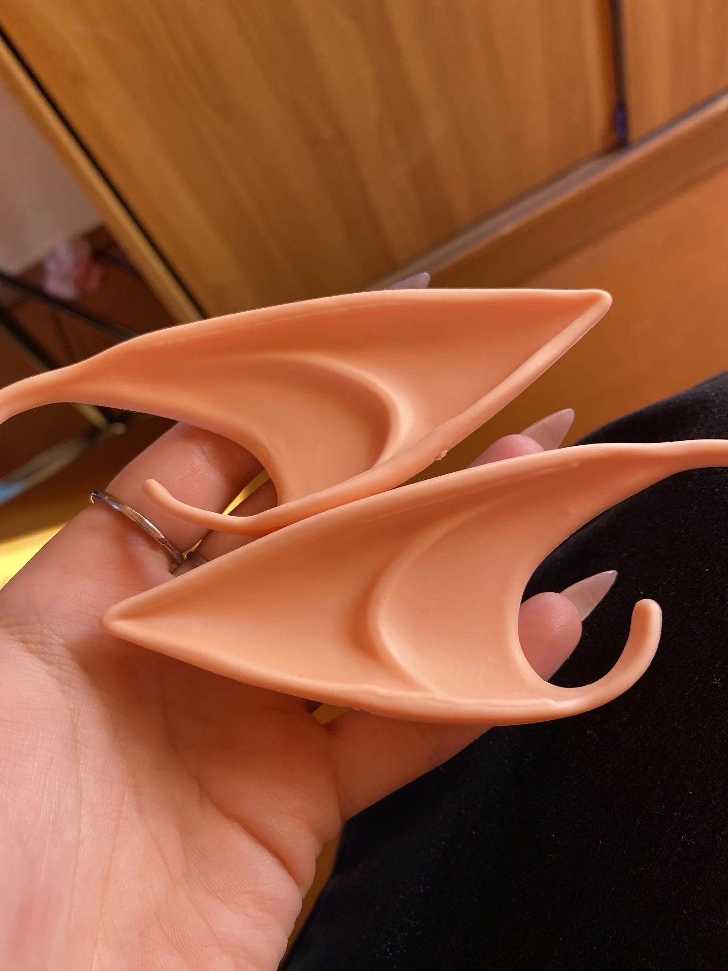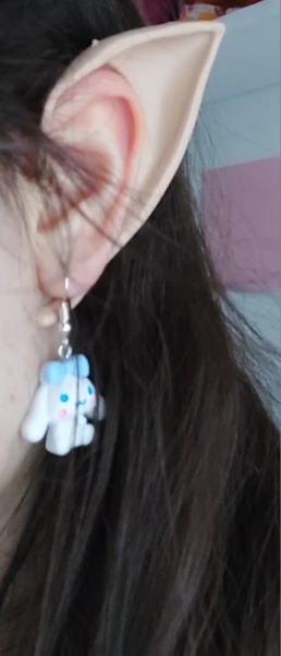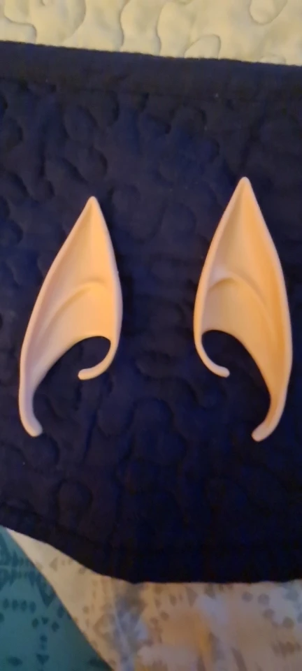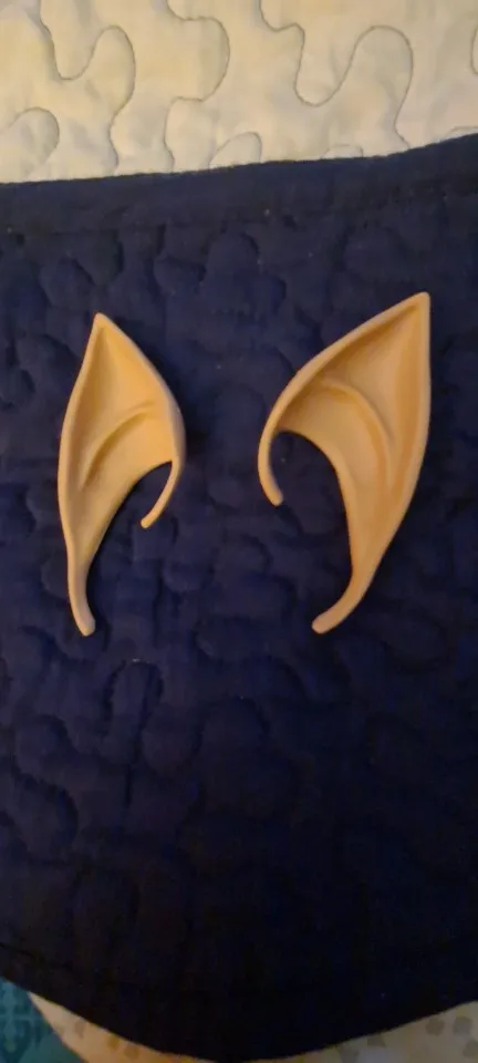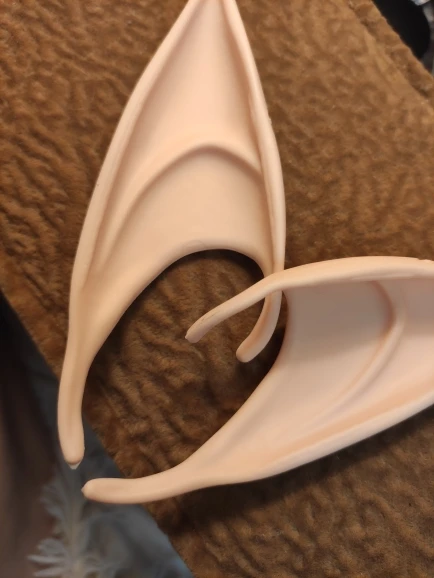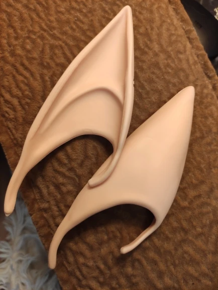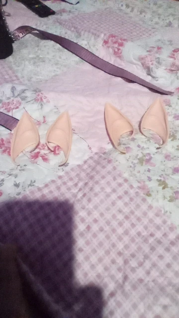 Вушка відповідають опису, кріпляться нормально (на маленьких ушках будуть бовтатися..) матеріал не жорсткий, гума мабуть. Сподобались! Я їх ще пофарбувала до свого уостюма. Фарба не дуже добре пристає, але я справилась))