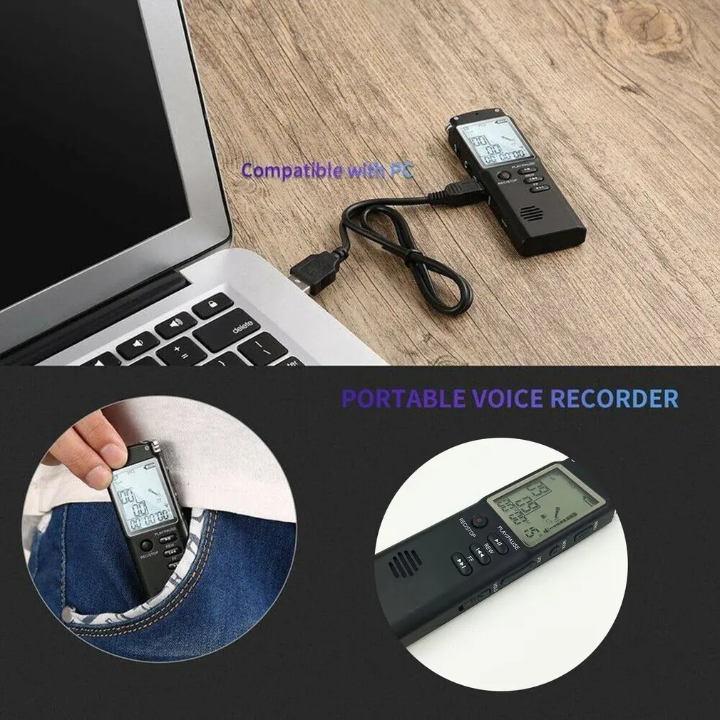Особенности:Функция записи одной кнопкой, просто нажмите REC, чтобы начать запись.Высокое качество MP3, WAV формат записи с емкостной аудиозаписью для более четкого звука.Поддержка записи телефона, функция повтора, автоматическое сохранение файлов с низким напряжением, функцией часов и внешним воспроизведением голосовых динамиков.С голосовым управлением, он будет автоматически записывать при прослушивании звука и пауза в противном случае.Внутренняя полимерная батарея большой емкости поддерживает запись в течение 720 минут.Спецификация:Тип товара: диктофонМатериал: АБС-пластикЦвет: черныйДля хранения Ёмкость: 8 / 16 / 32 ГБПамять: встроенная флэш-памятьМикрофон: всенаправленный конденсатор 360 градусов MICФормат записи: WAV /MP3Дисплей: ЖК-экранВремя записи: 720Интерфейс: USB 2,0Расстояние записи: 6-12 мПосылка включает в себя:1x диктофон1x наушники1x USB кабель1x микрофон1x аудио кабель1x телефонный кабель1 телефонная/записывающая распределительная коробка1x Руководство пользователя