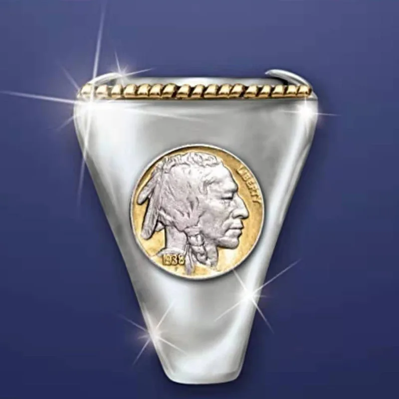 Изысканное модное памятное кольцо с никелевой монетой Buffalo Buffalo, двухцветное кольцо с головой индийских вождей, мужские модные аксессуары, украшения для банкета, подарок на годовщину