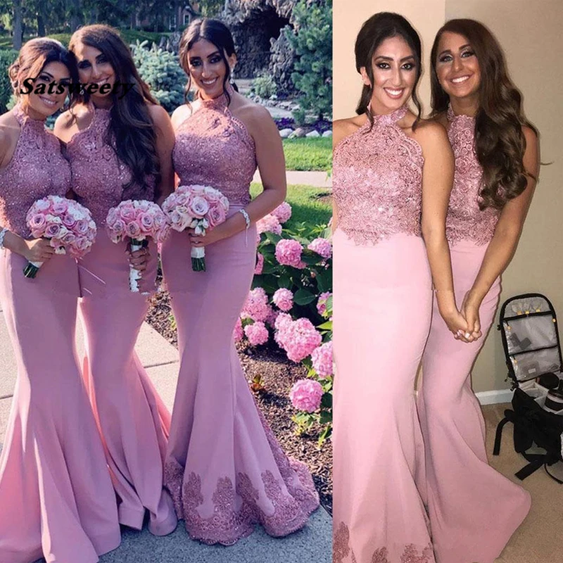 Румяна розовые платья подружки невесты русалка с лямкой на шее вышитое бисером длина до пола 2022 Новинка африканская Модель платье подружки невесты для гостей свадьбы