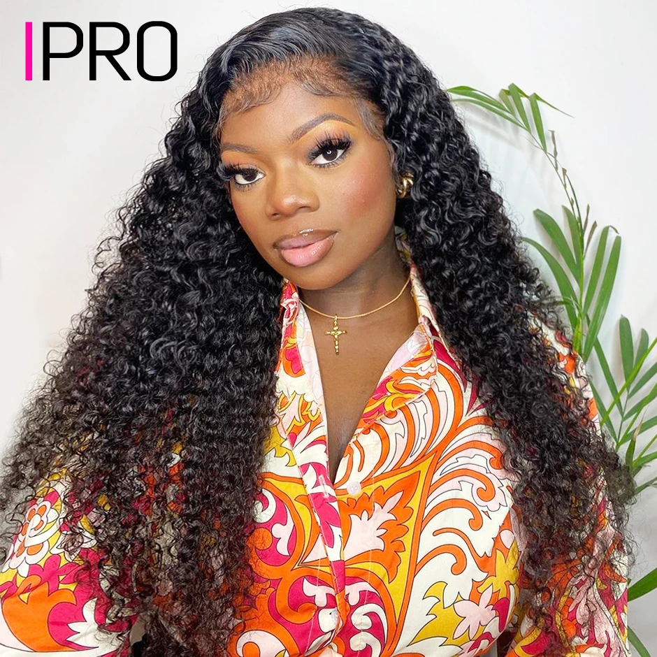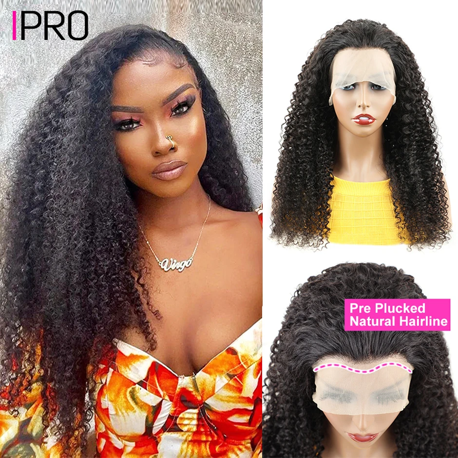 Парик для фронтальных волос IPRO, 180% кудрявые вьющиеся человеческие волосы, парик с предварительно выщипанной кружевной частью 13*1, парик для фронтальных волос