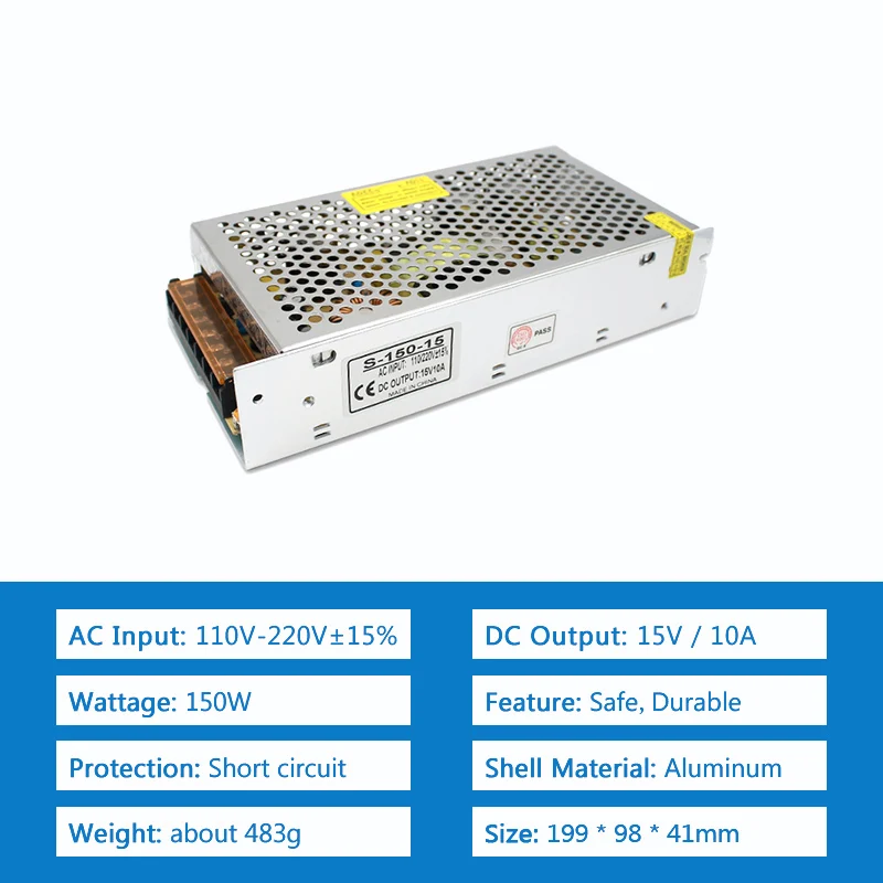 Адаптер питания, постоянный ток от 220 В до 15 В, 10 А, для светодиодный, переменный ток 150 Вт, подходит для светодиодных лент