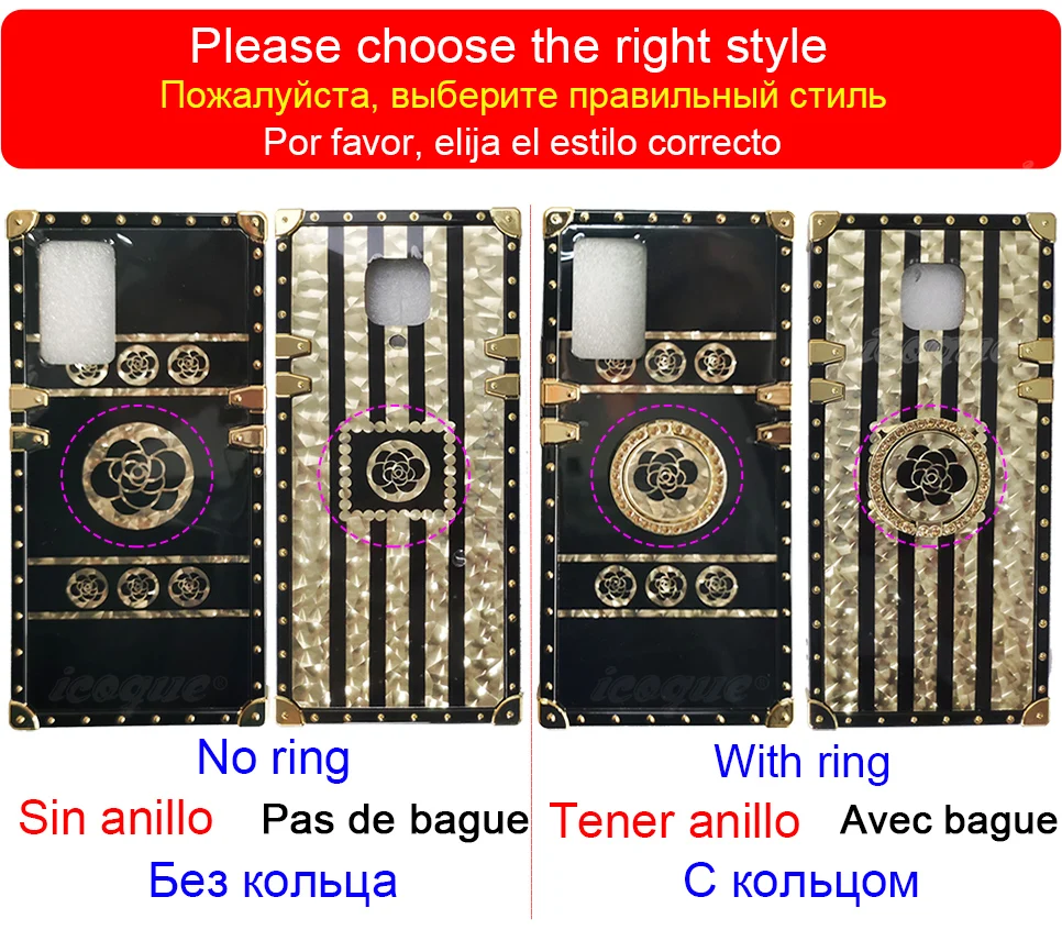 Роскошный квадратный блестящий золотой чехол с кольцом-держателем в...