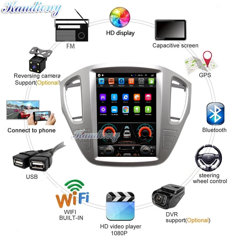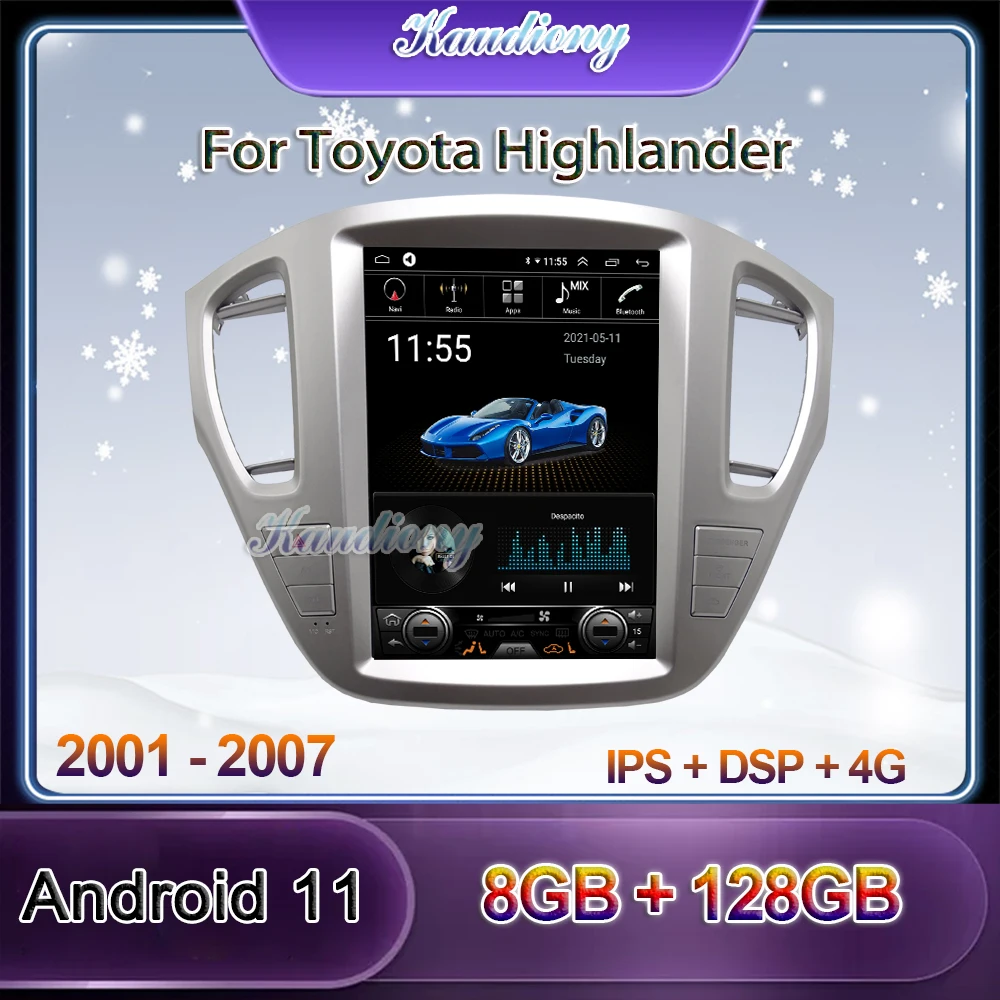 Kadiony 12,1 "Telsa стиль вертикальный экран Android 11,0 Автомагнитола головное устройство для Toyota Highlander автомобильный DVD мультимедийный плеер Авто GPS Навигация стерео 4G 2001-2007 сенсорный экран Bluetooth BT Музыка NO 1 DIN NO 2 DIN