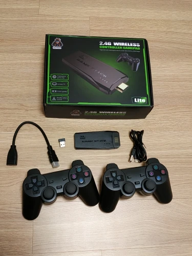 ИнструкцииПодключите игровую консоль к порту HD телевизора, подключите usb-кабель передачи данных к хосту, затем Настройте источник сигнала телевизора на канал HD, И отображение экрана списка игр на телевизоре.Поместите 2 батарейки AAA (не входят в комплект поставки) в игровой контроллер, а затем используйте контроллер для управления игровой консолью.Выйти из игры: Нажмите SECECT +, чтобы начать две секунды одновременно.Посылка содержит:Игровая консольДва беспроводных игровых контроллераКабель питанияРуководство пользователяУдлинительный кабель HDMIБеспроводной приемник