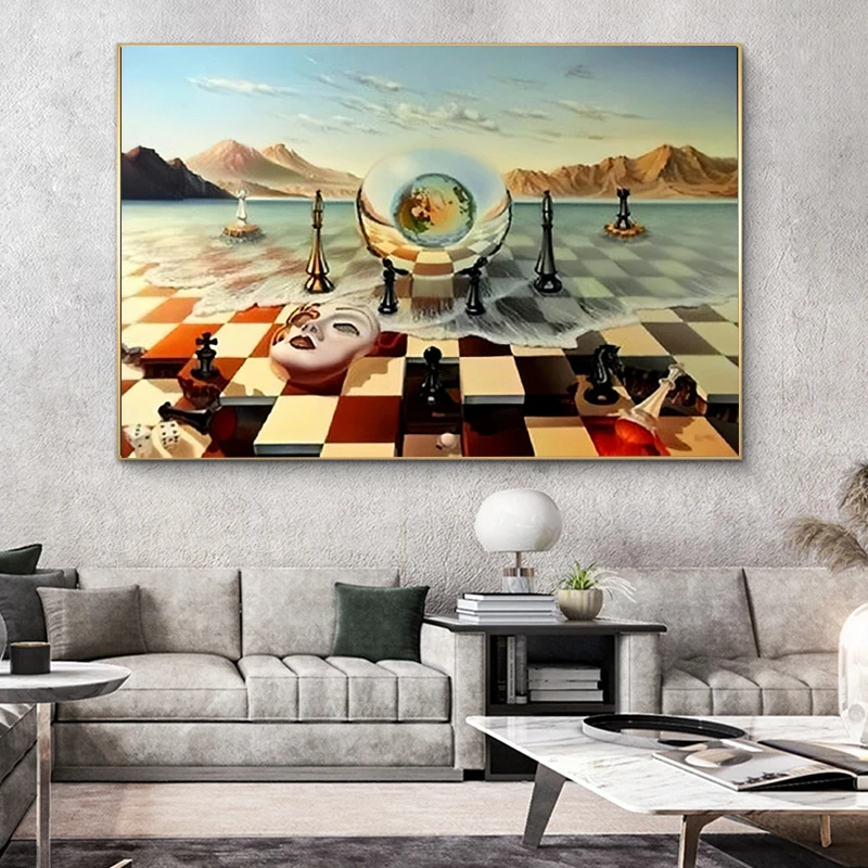 Девушка играющая в шахматы с роботом Картина на холсте настенное ис...
