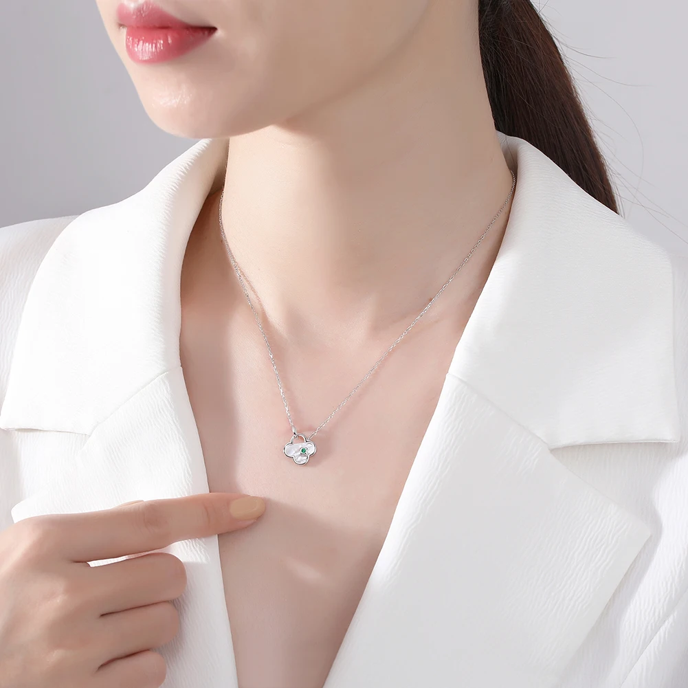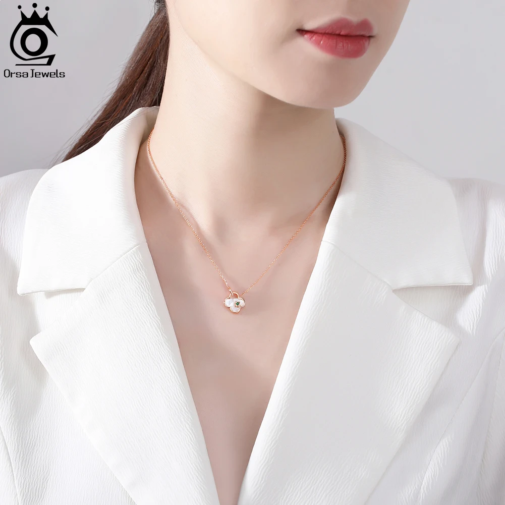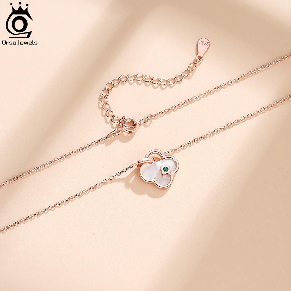 ORSA JEWELS солидный кулон из стерлингового серебра 925 пробы с клевером, ожерелье с подвеской из натурального циркония, цепочка для женщин и девочек, ювелирные изделия GMN18