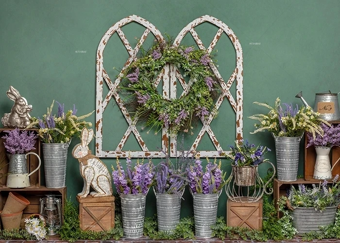 Фон для студийной фотосъемки с изображением сада, цветов, кролика, свадьбы