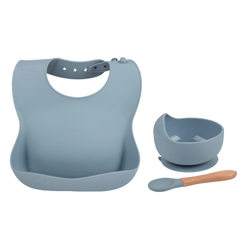 Набор детских силиконовых нагрудников, нескользящая детская присоска, деревянная ручка, силикон ложка, нагрудники, посуда для кормления ребенка