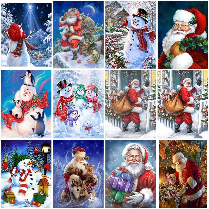Алмазная 5D картина сделай сам, вышивка с Санта-Клаусом, вышивка крестиком, мультяшная мозаика с круглыми стразами, подарок на Рождество, домашний декор