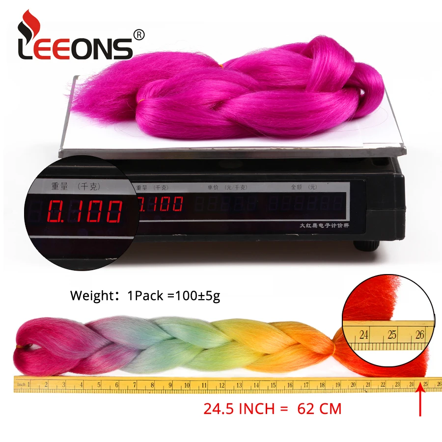Коса для косичек Leeons, 100 г, 24 дюйма, для косичек, Радужная, пр...