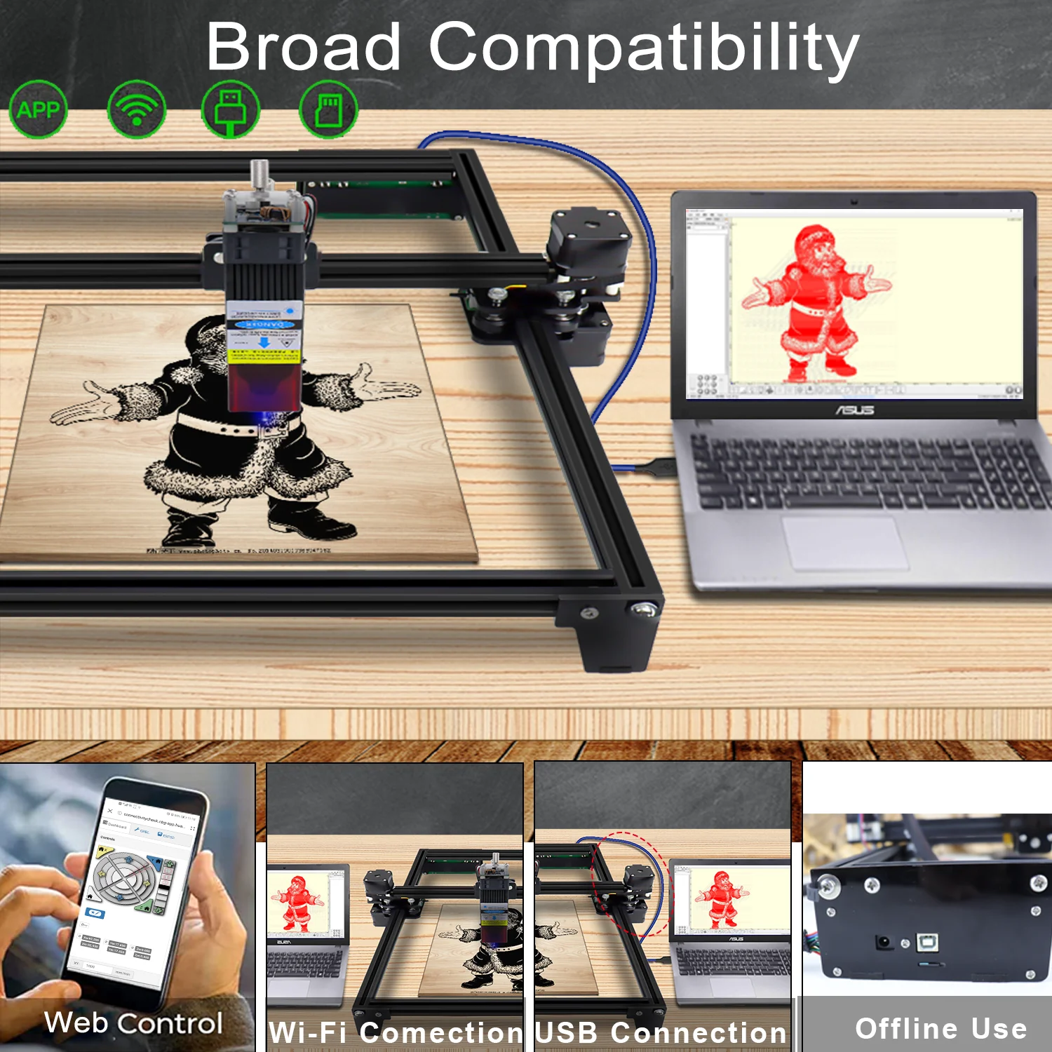 Конструкция из алюминиевого сплава и акрила делает машину более прочной и улучшает точность гравировки. Вся конструкция предназначена для быстрой сборки, и сборка обычно может быть завершена в течение 10-20 минут.