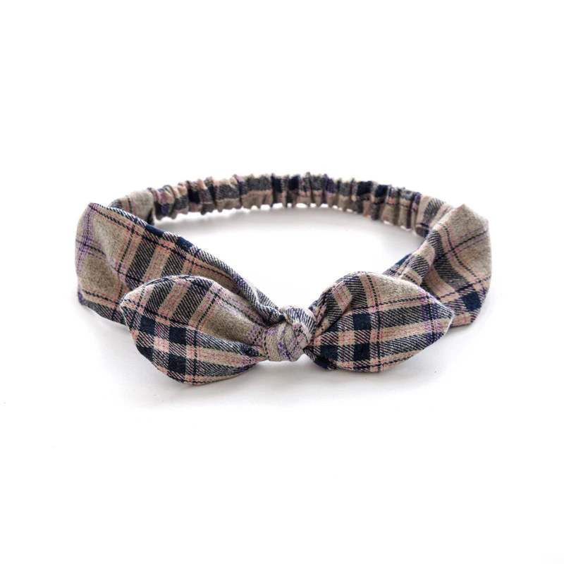 Повязка для волос женская в клетку, мягкая цветная винтажная эластичная Бандана с перекрестным бантом, бандана, аксессуары для волос для девушек