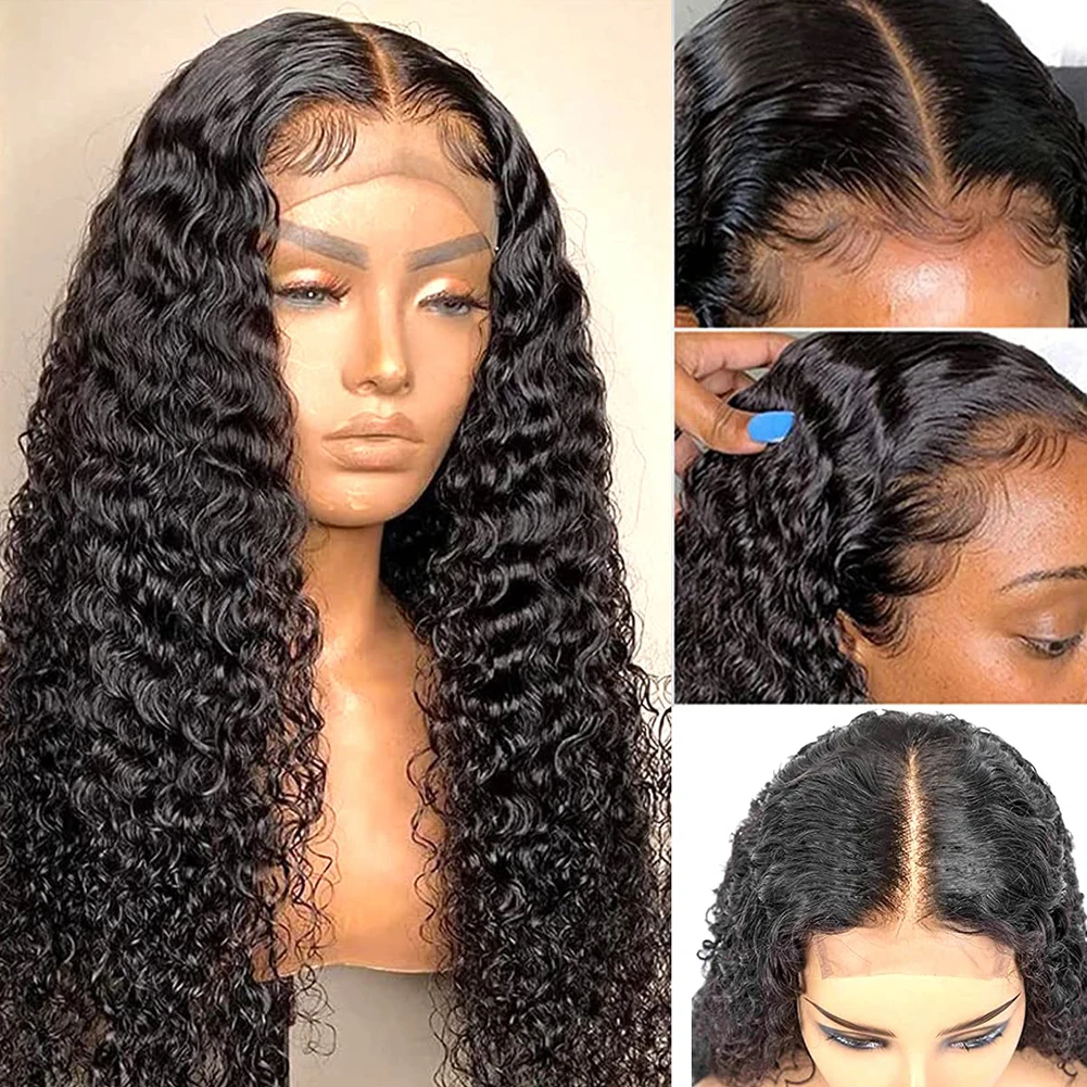 RONGDUOYI длинные вьющиеся кружевные передние парики предварительно выщипанные термостойкие волоконные Длинные Синтетические парики для женщин для ежедневного использования черный косплей парик