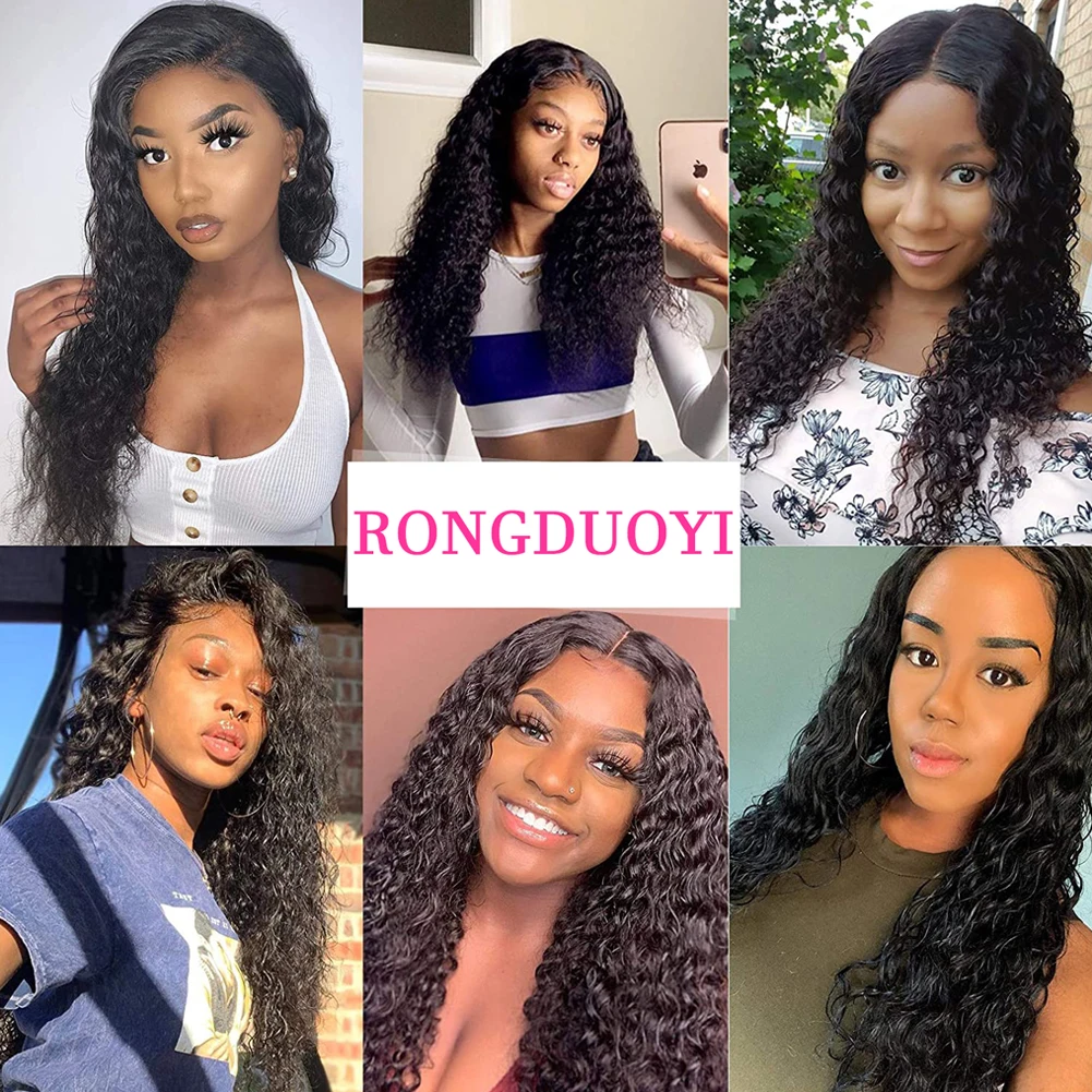 Парик RONGDUOYI Remy с кудрявыми кружевами, для косплея, черный вол...