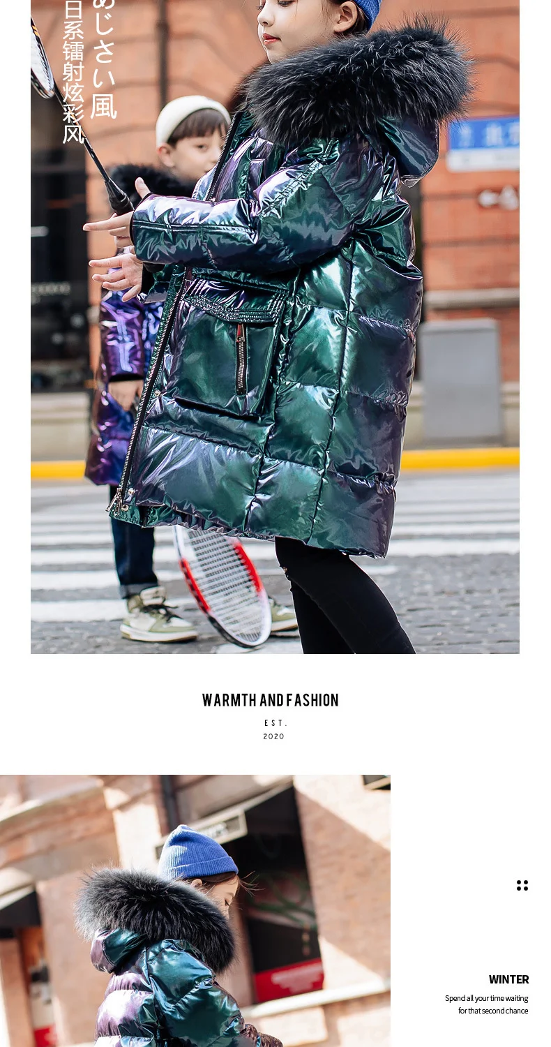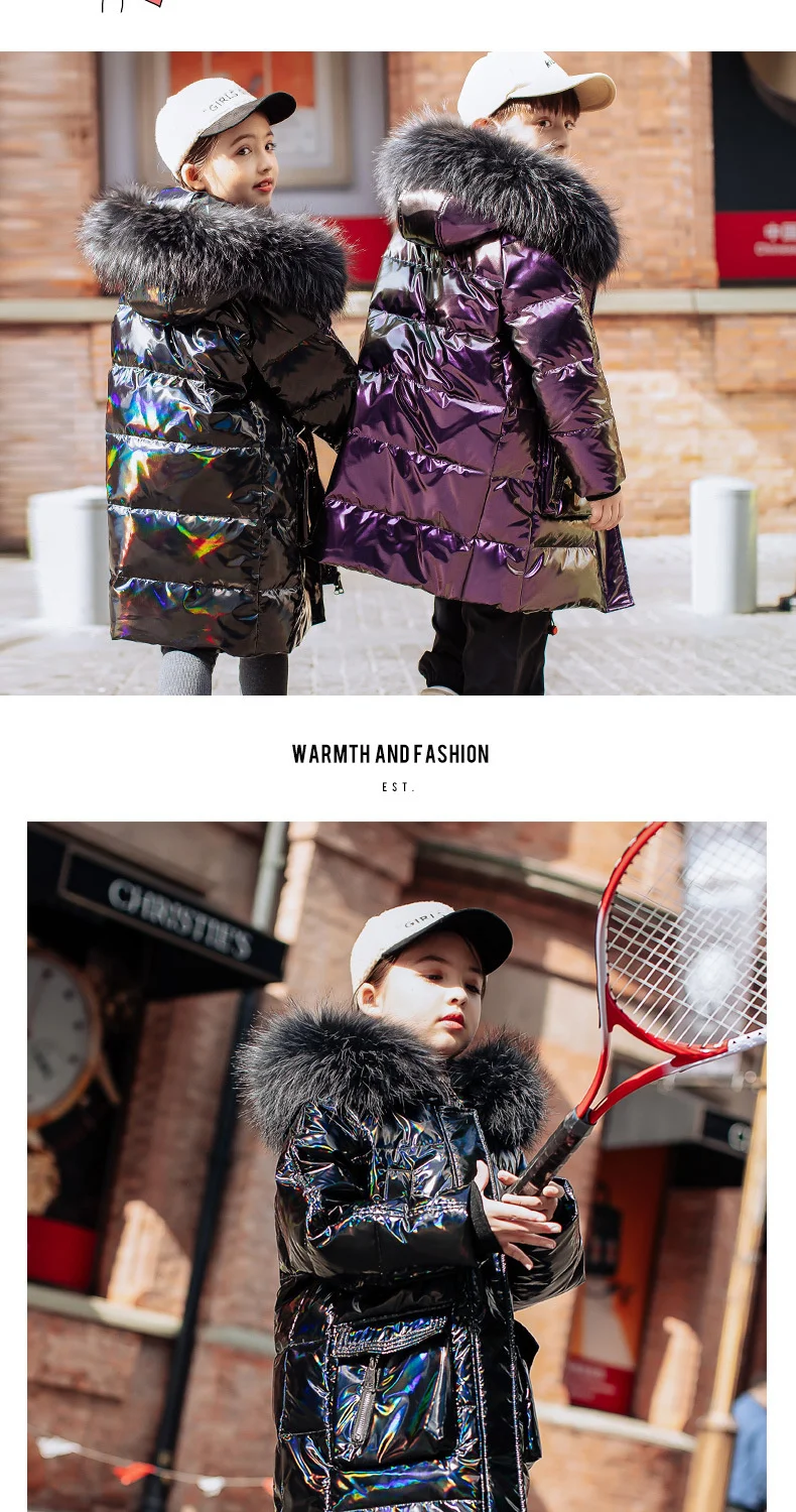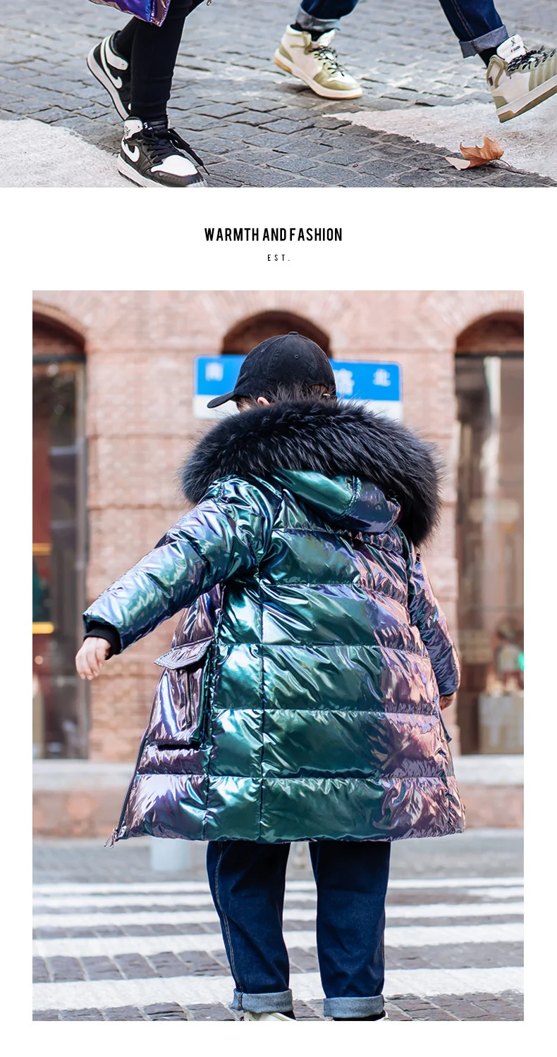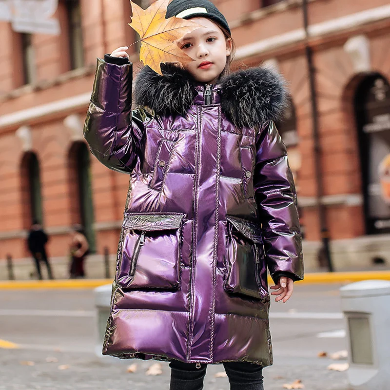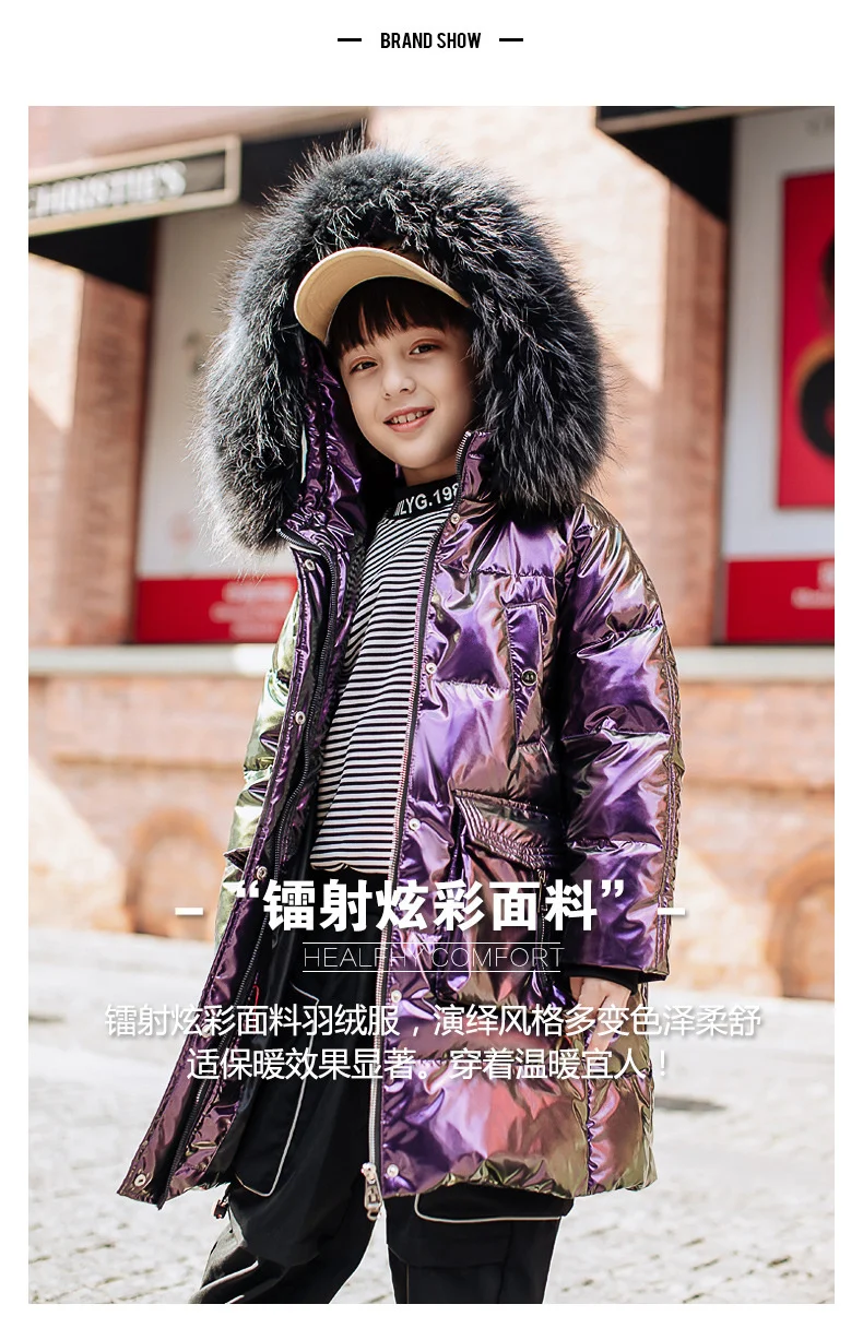Детская пуховая куртка с капюшоном, водонепроницаемая пуховая парка с натуральным мехом, для мальчиков и девочек, для русской зимы, 2022 -30