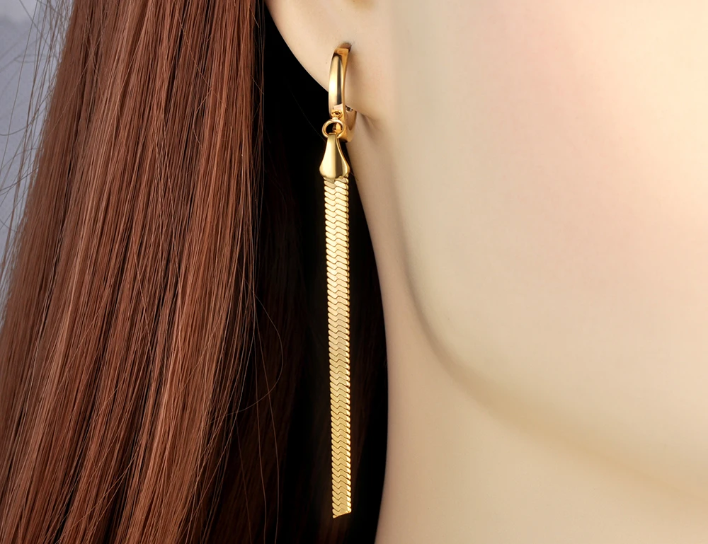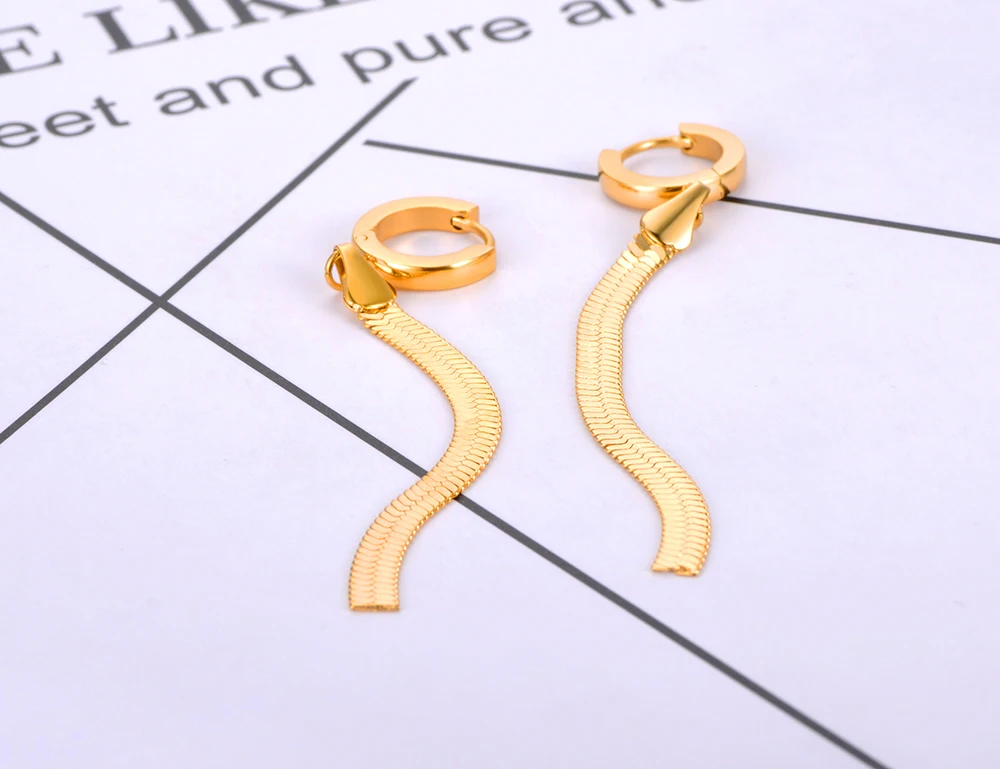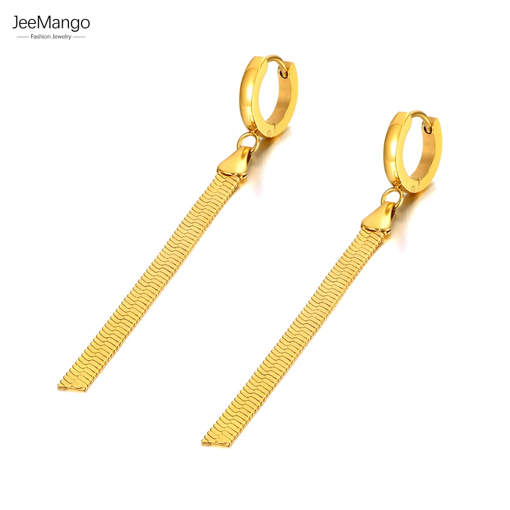 JeeMango Серьги-кисточки из титановой нержавеющей стали в богемном вечерние ле 18K золотые серьги-цепочки в виде змеи ювелирные изделия для женщин Kolczyki JE21196
