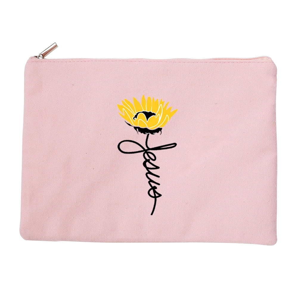 Косметичка с изображением подсолнуха и Иисуса для женщин, женская сумка на молнии, ранцы для помады, христианские подарки на молнии для девушек