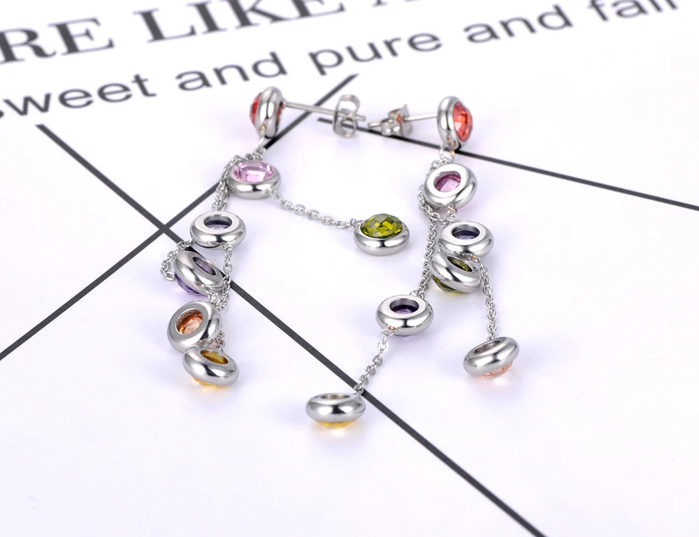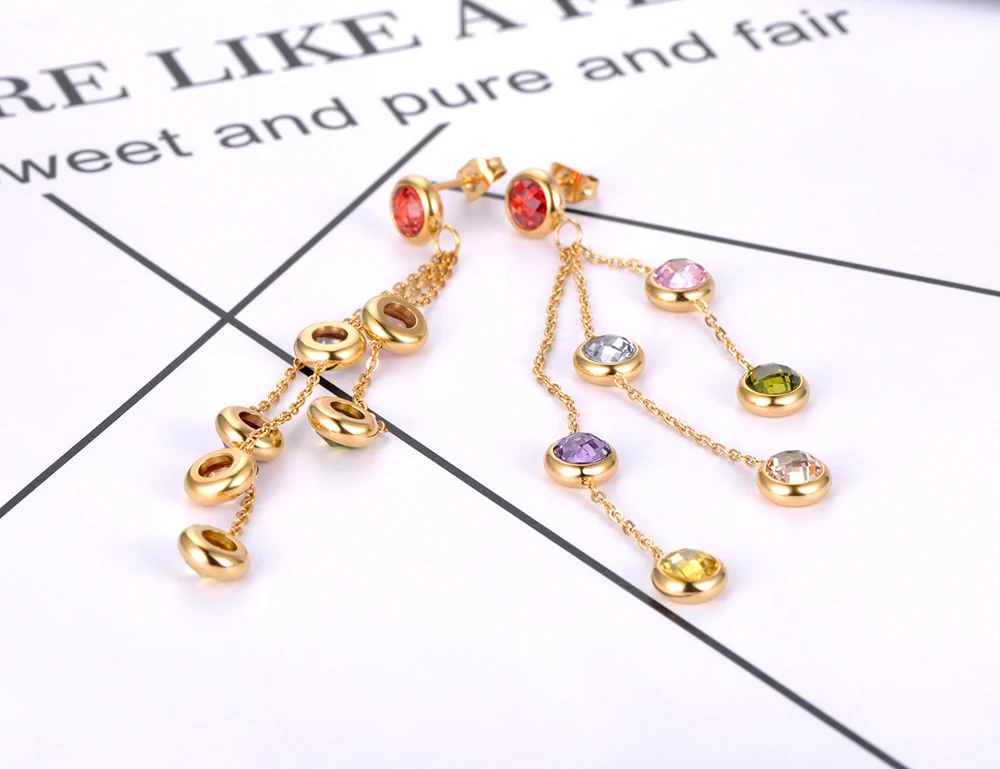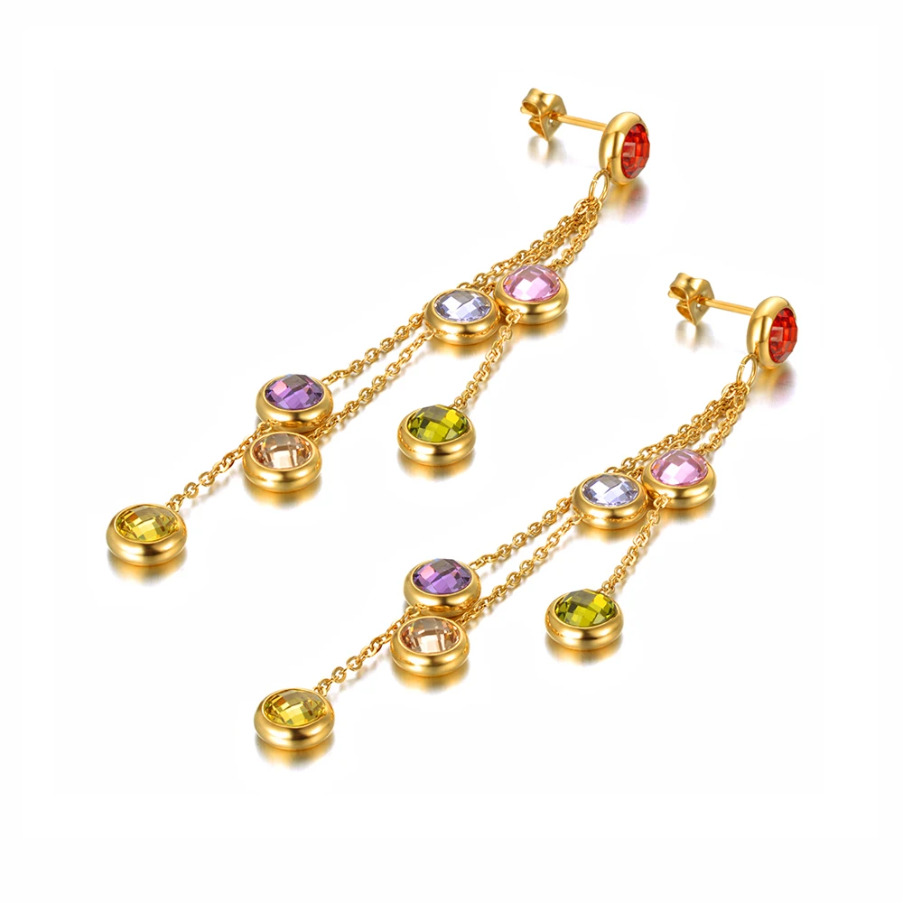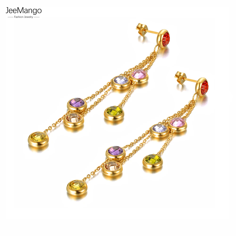 Модные серьги JeeMango из нержавеющей стали в богемном стиле с кисточками, серьги из 18-каратного золота с разноцветным кубическим цирконием, ювелирные изделия для женщин JE21182