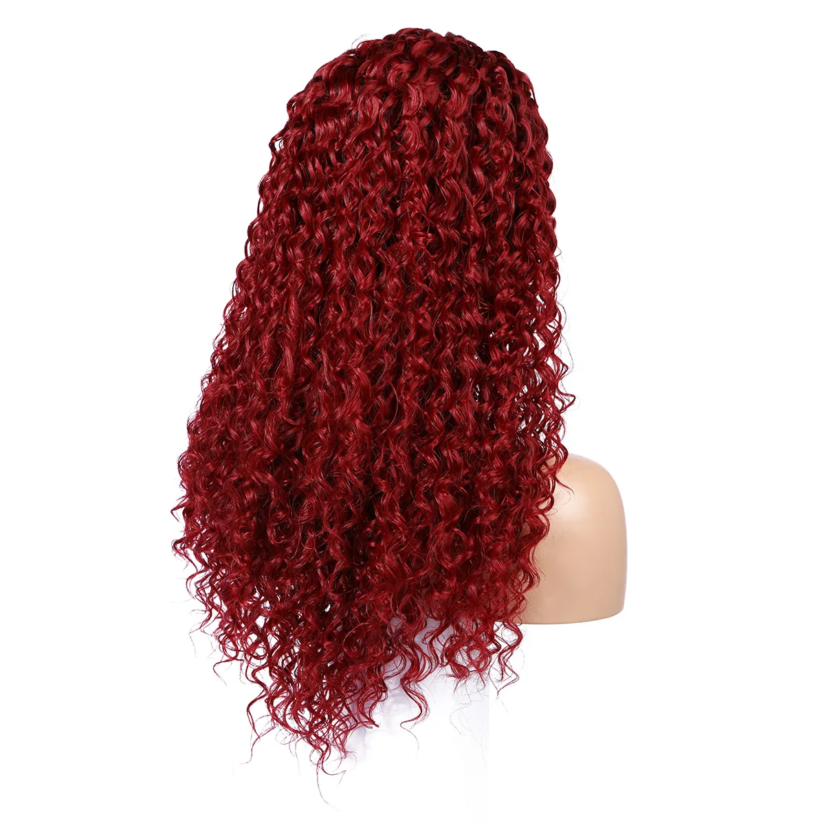 180% Плотность 26 дюймов бордовые мягкие Курчавые Кудрявые Парики бесклеевые кружевные передние парики Remy высокая температура для черных женщин с детскими волосами