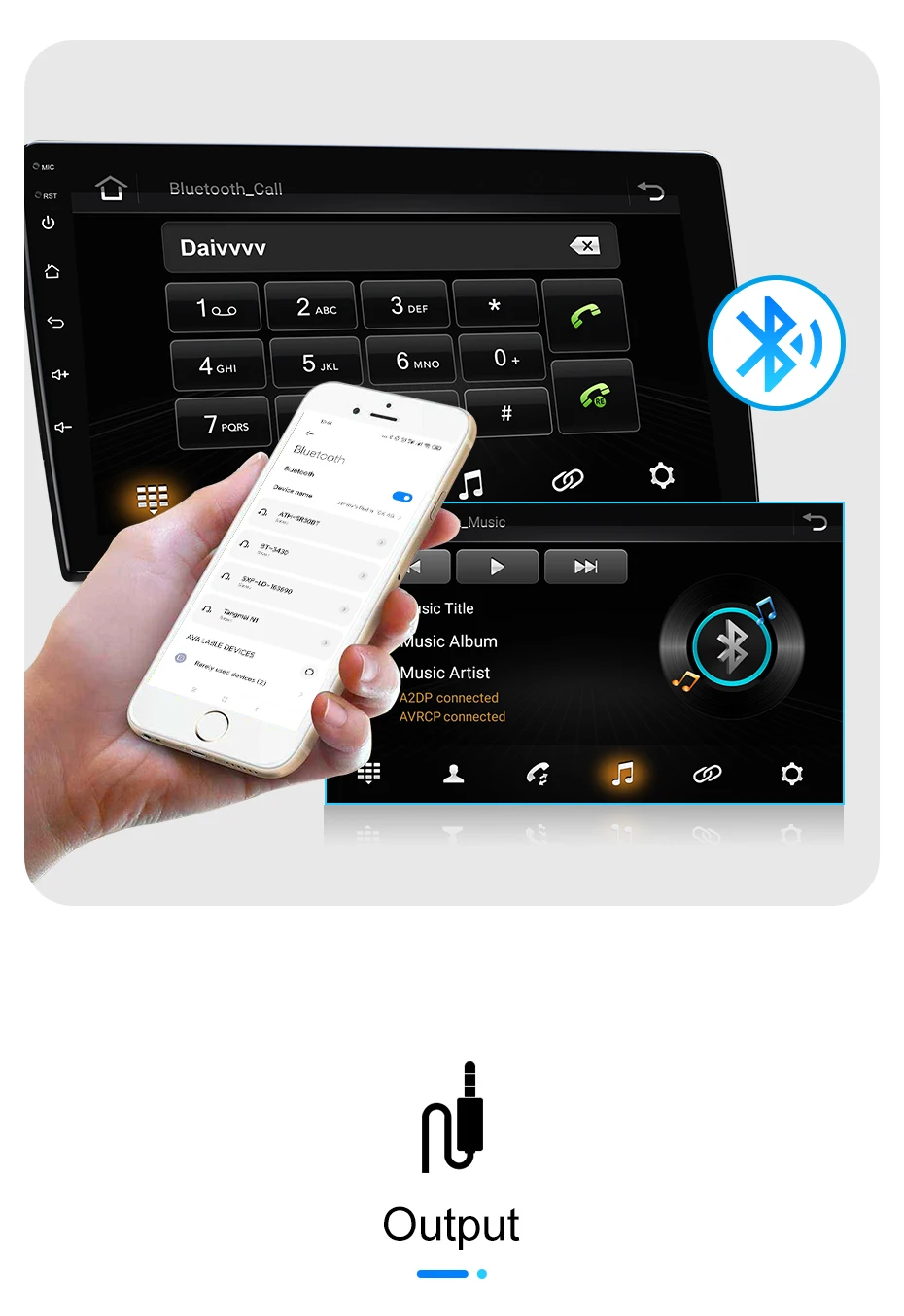 >>> Подключите телефон к радио через bluetooth. поддержка громкой связи, прослушивание музыки и функция телефонной книги.