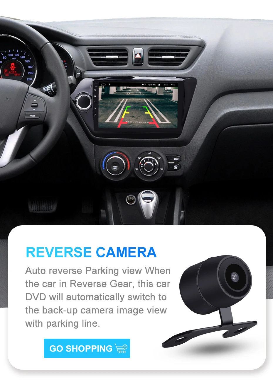 >>> Включите заднюю передачу и автоматически переключитесь на заднее изображение на дисплее. Находите препятствия вовремя, создавай те безопасные условия для вождения (если вам нужна камера, нажмите, чтобы заказать)