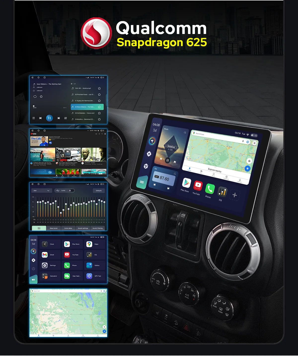 Автомобильный радиоприемник Qualcomm Snapdragon 625, 2din, Android, стереоприемник 10,1 дюйма, магнитофон, мультимедиа, 4G CarPlay, полноразмерный экран