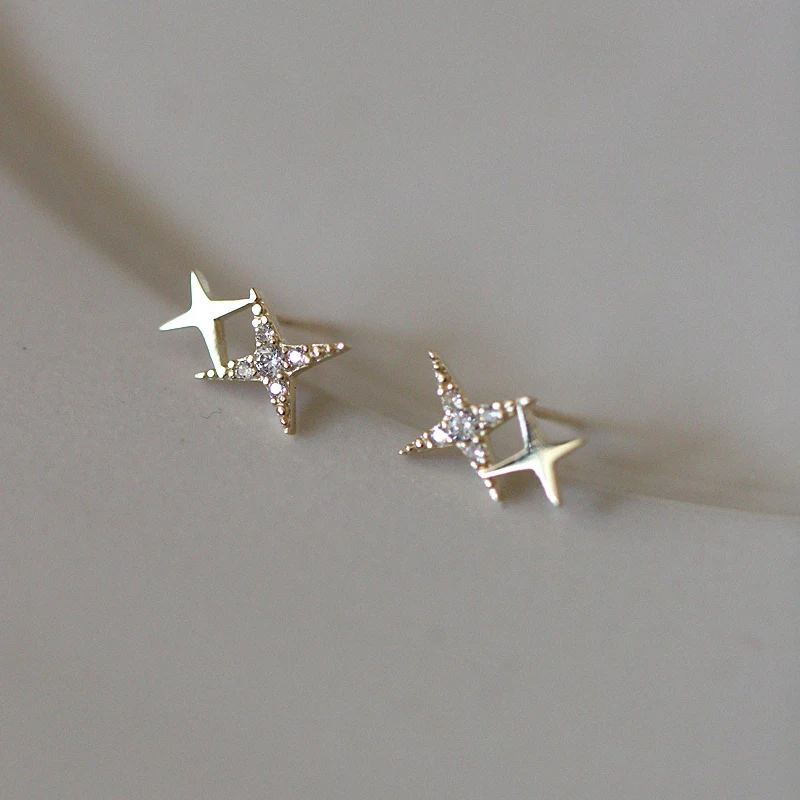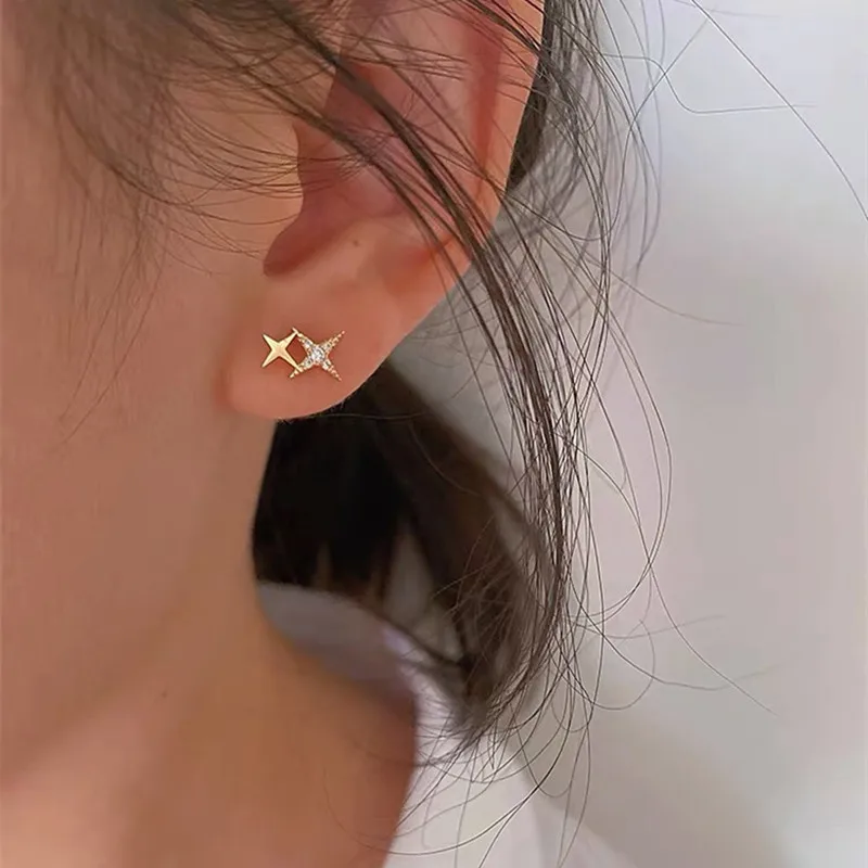 Женские маленькие серьги из серебра 925 пробы с инкрустированными кристаллами и четырьмя звездами