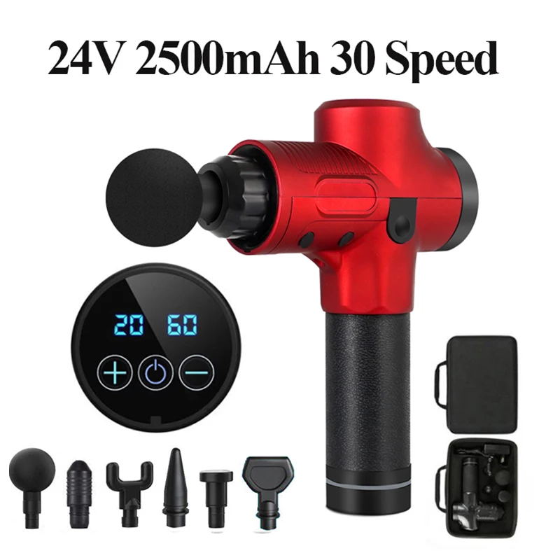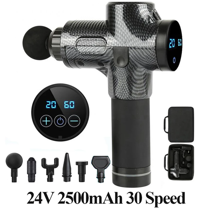 1 x массажный пистолет с ЖК-дисплеем6 массажных головокЗарядное устройство US/EU/AU/UK-1 шт.1 х Портативная сумка EVA1 x Руководство пользователя