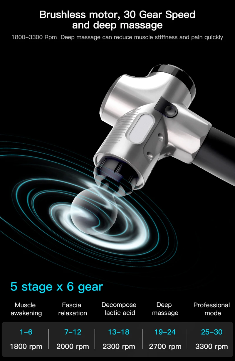 Технология шумоподавления нового поколения24V с бесщеточным двигателем постоянного тока и двухрядным подшипником передачи приносит наивысшей мощности и низким уровнем шума.Сильная мотивация 30-скорости передачи дизайн в сочетании с различные массаж потребности.