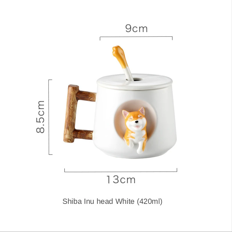 420 мл мультяшная Ретро керамическая чашка Милая кружка с крышкой Ложка домашняя мультяшная Пара кофейная чашка Сиба ину собака чашка подарок напиток