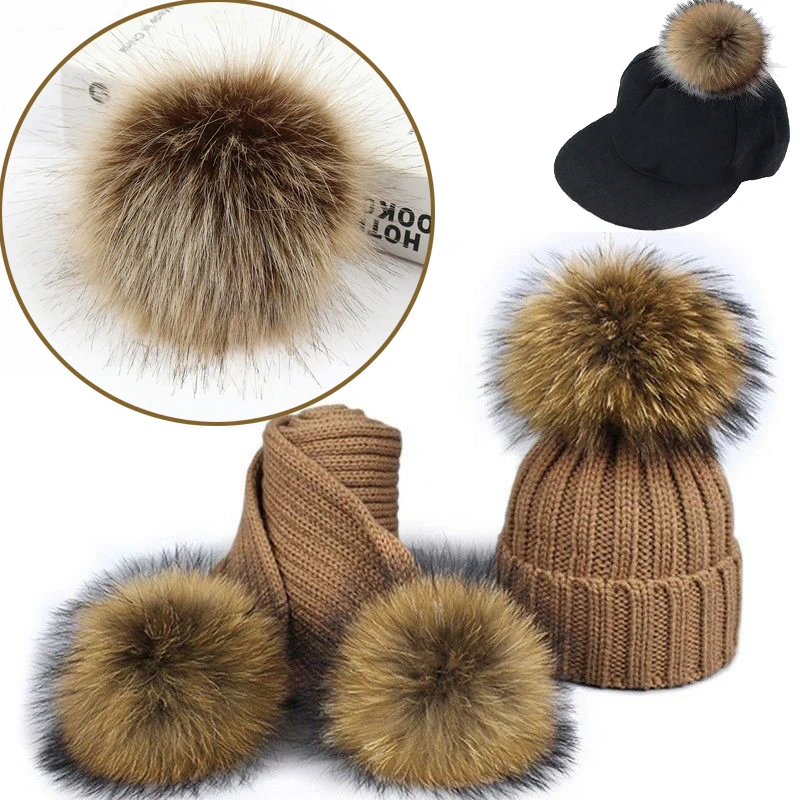 Помпон из искусственного меха енота для женщин и детей, 12 см