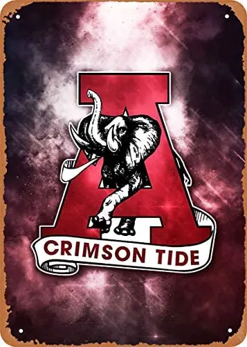 Винтажный металлический знак NCAA Алабама темно-красная доска 8 дюймов X12 дюймов Оловянная пластина декор для стен
