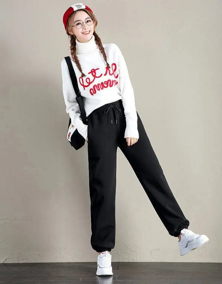 Женские спортивные брюки на шнуровке, утолщенные теплые спортивные ...