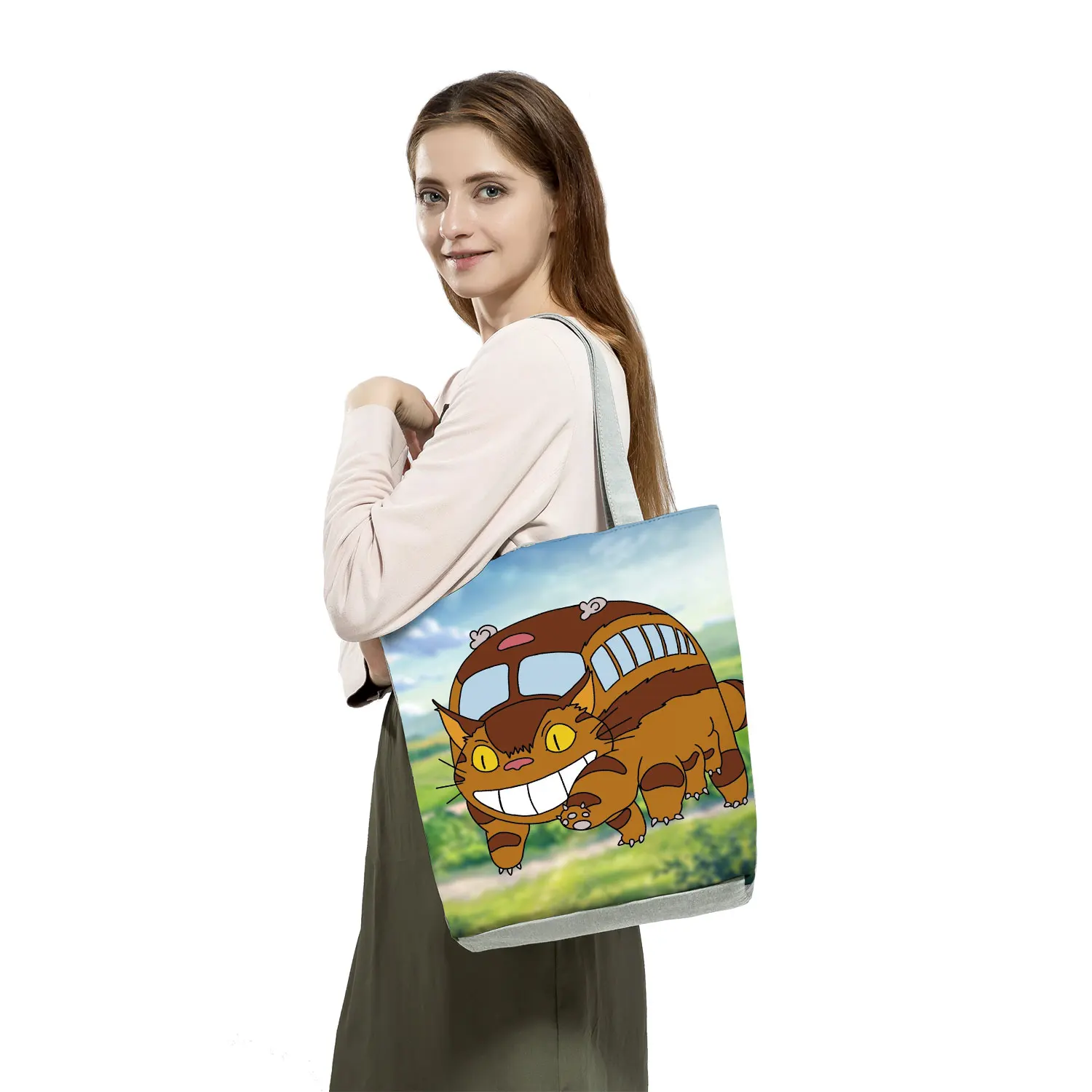 Складные сумки с животными, сумка через плечо, эко многоразовые сумки для покупок, милые женские школьные сумки для школьников, сумка для книг с мультяшным принтом Тоторо
