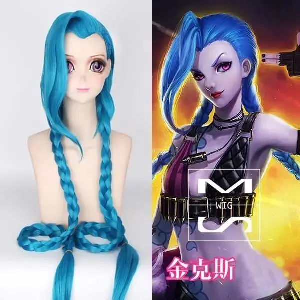 LOL костюм Джинкс парик Arcane Jinx синие косички парик Свободная п...