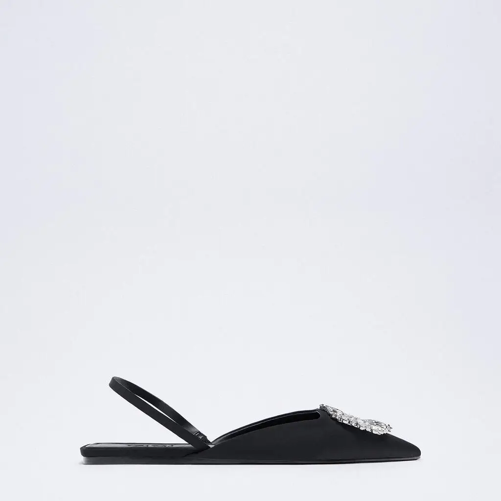 Женские туфли с ремешком на пятке, с острым носком, на плоской подошве