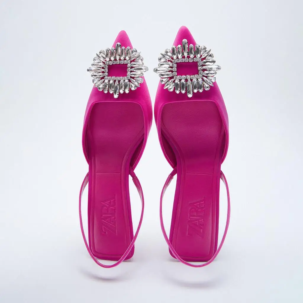 Женские туфли на каблуке TRAF 2022 Стразы с котятами элегантные черные розовые мюли с острым носком уличные шлепанцы с ремешком на пятке