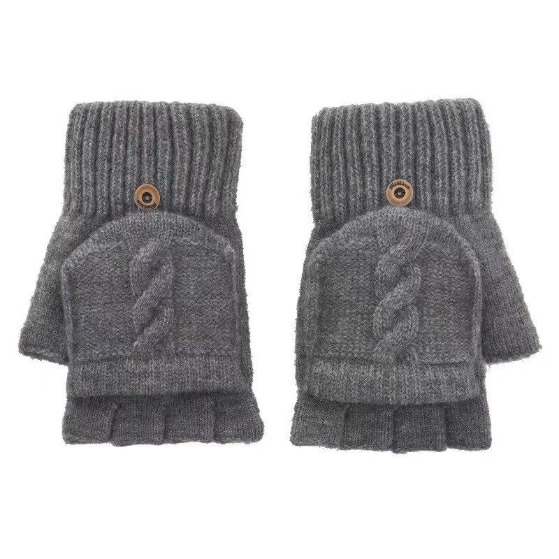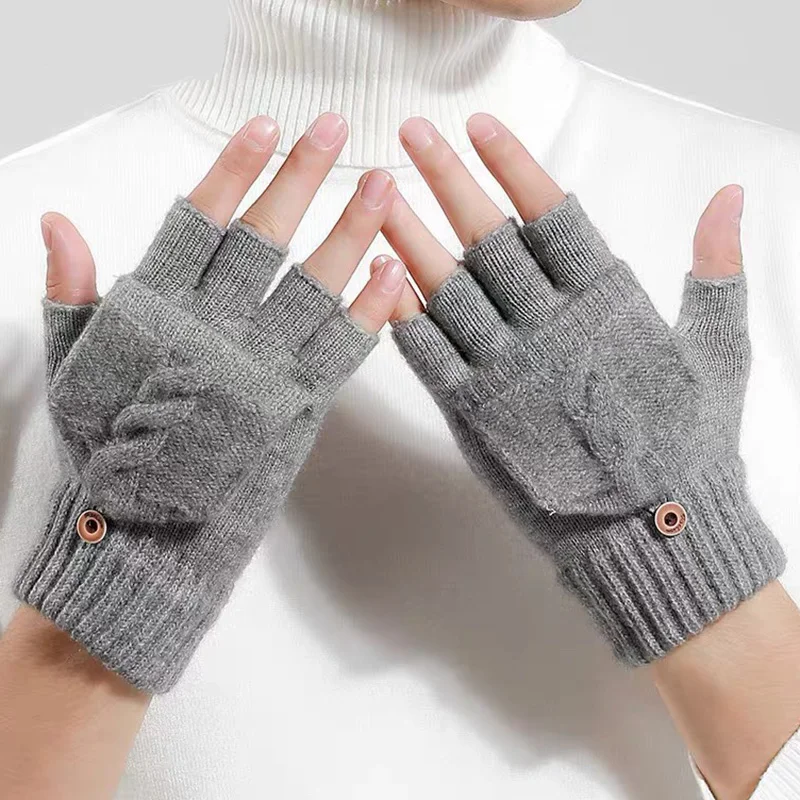 Шерстяные вязаные перчатки-флип без пальцев, зимние теплые гибкие перчатки для сенсорного экрана для мужчин, женщин, мужчин, унисекс, искусственные пальцы
