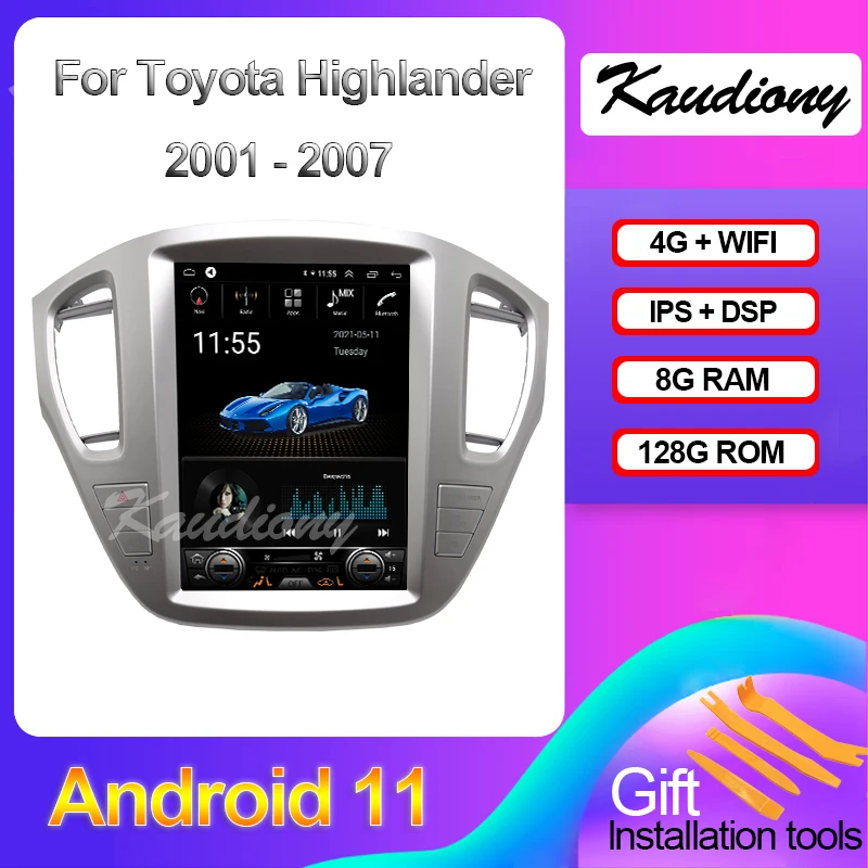 Kadiony 12,1 "Telsa стиль вертикальный экран Android 11,0 Автомагнитола головное устройство для Toyota Highlander автомобильный DVD мультимедийный плеер Авто GPS Навигация стерео 4G 2001-2007 сенсорный экран Bluetooth BT Музыка NO 1 DIN NO 2 DIN